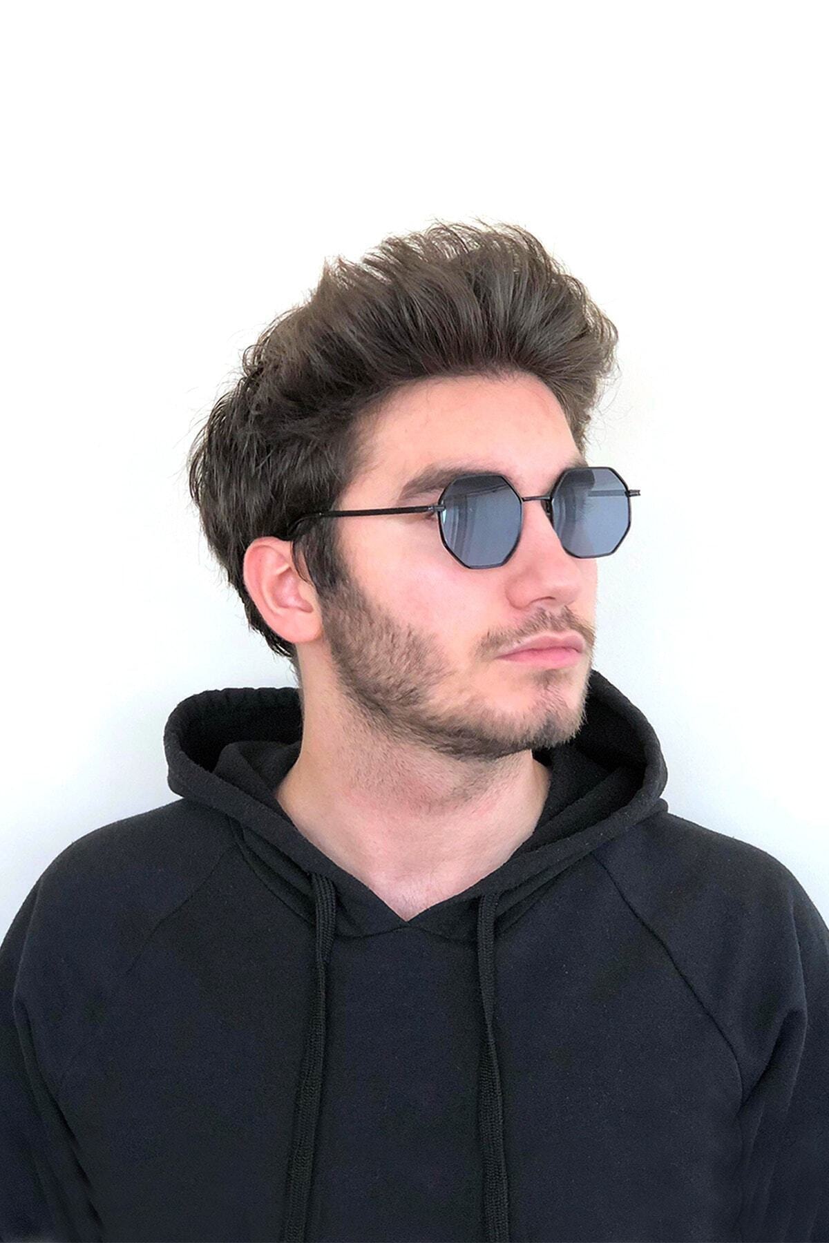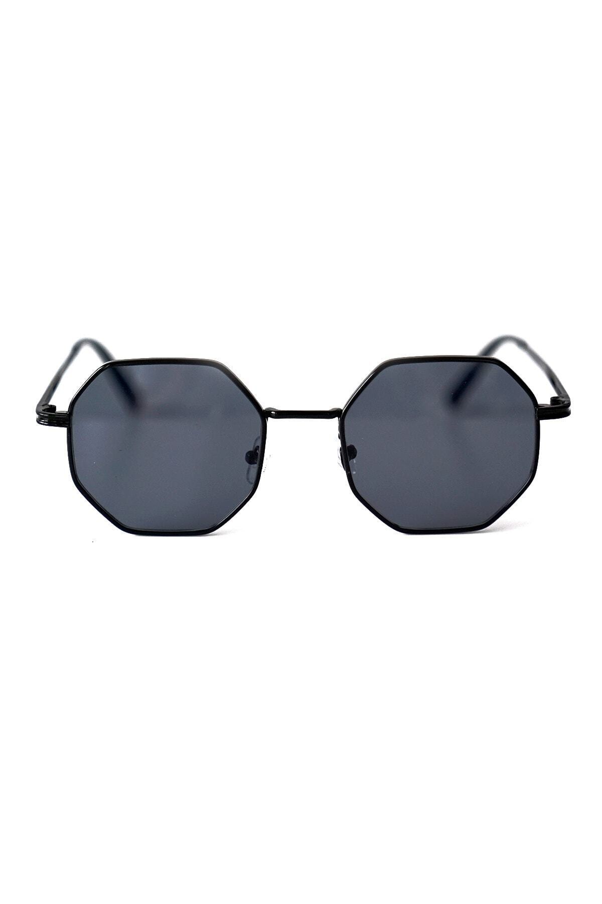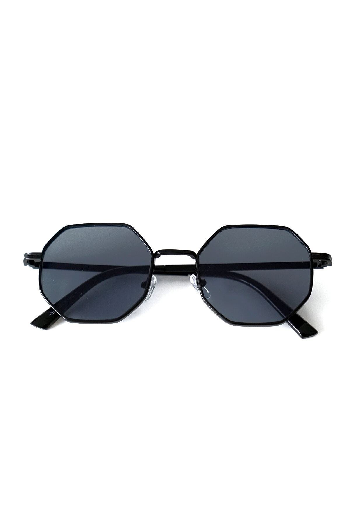 Genel Markalar Unisex Sekizgen Siyah Güneş Gözlüğü