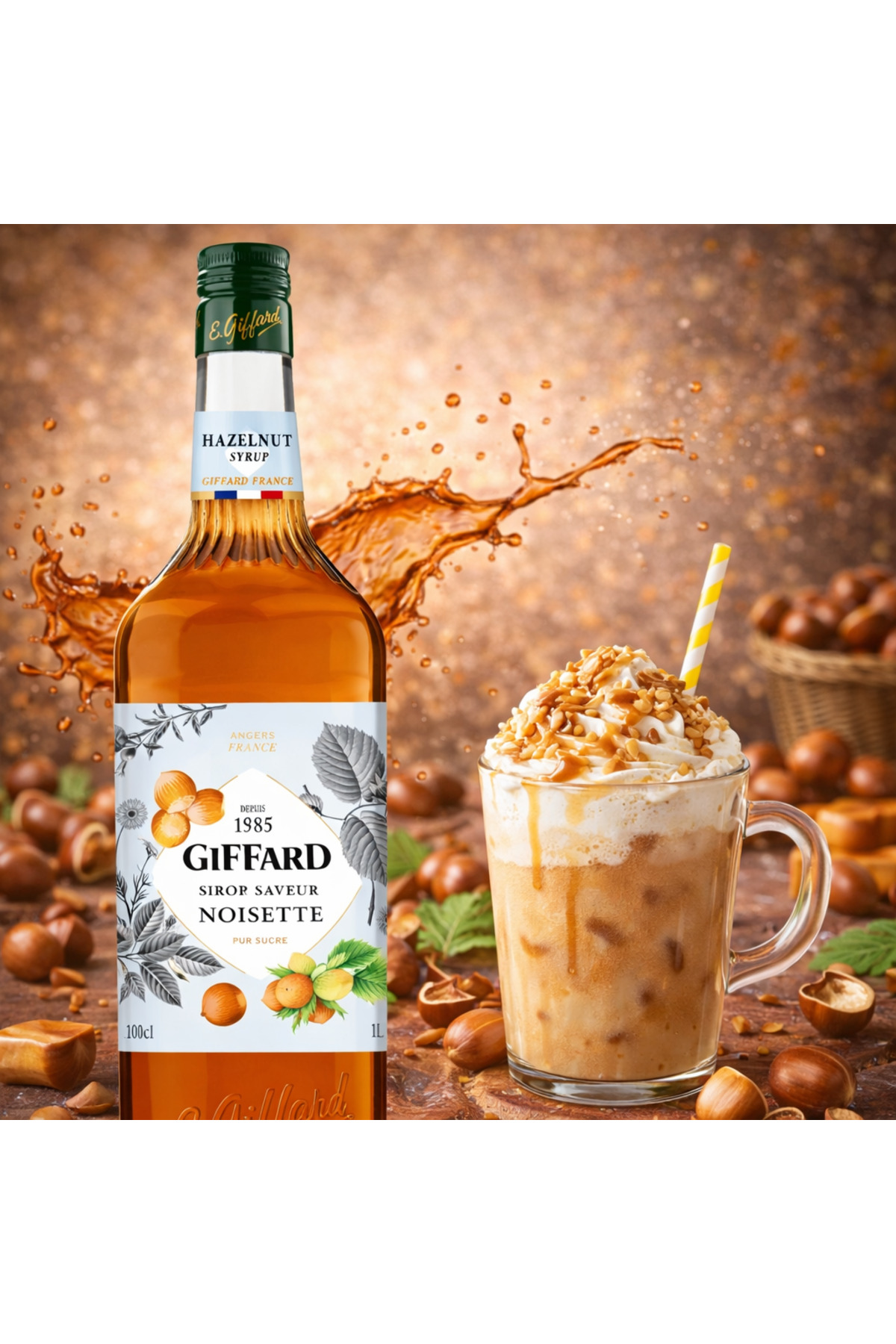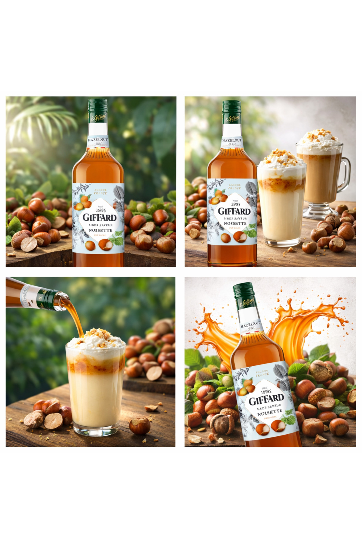 Giffard Fındık (Hazelnut) Şurubu 1 L – Premium Fındık Aromalı Kokteyl & İçecek Şurubu