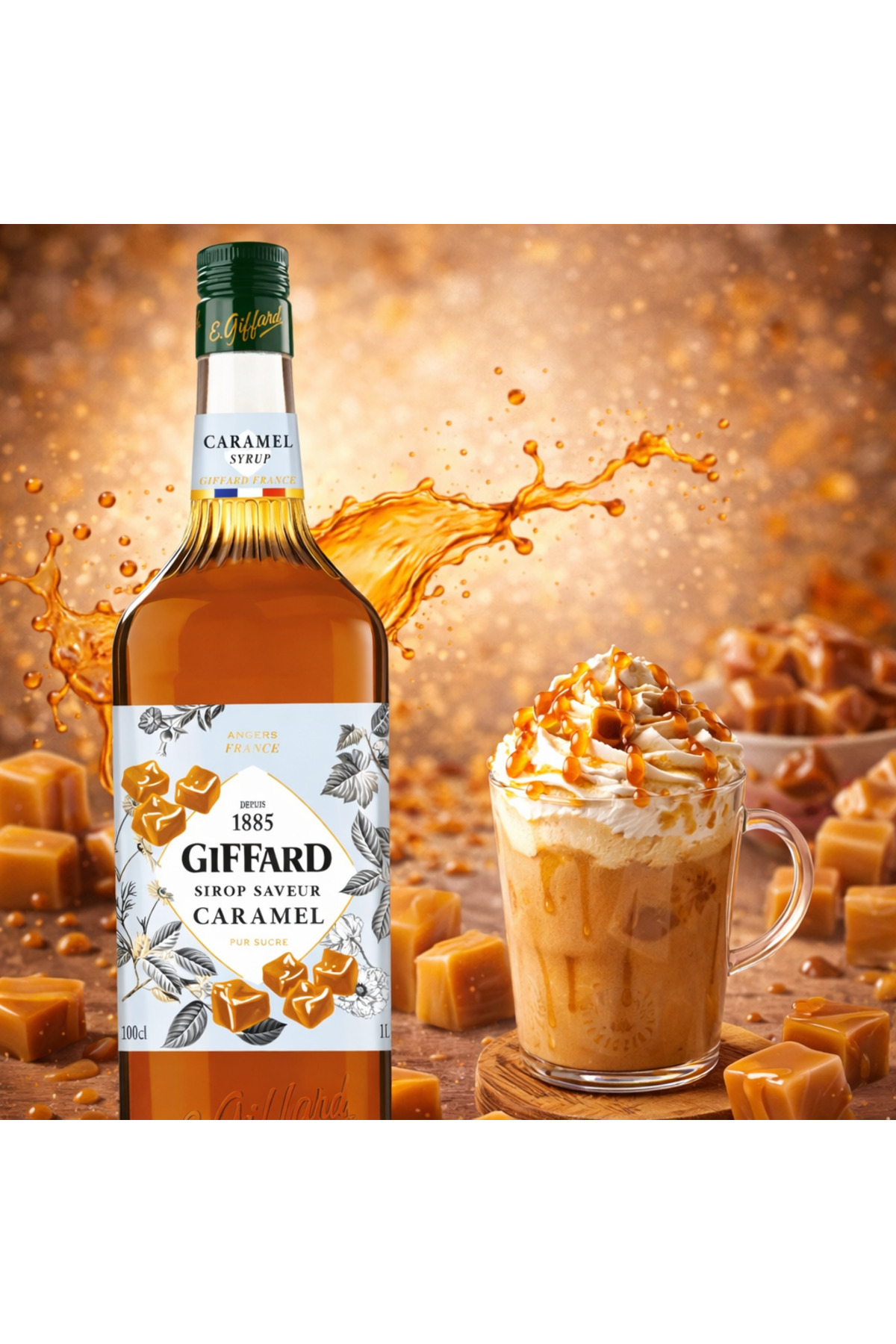 Giffard Karamel (Caramel) Şurubu 1 L – Premium Karamel Aromalı Kokteyl & İçecek Şurubu