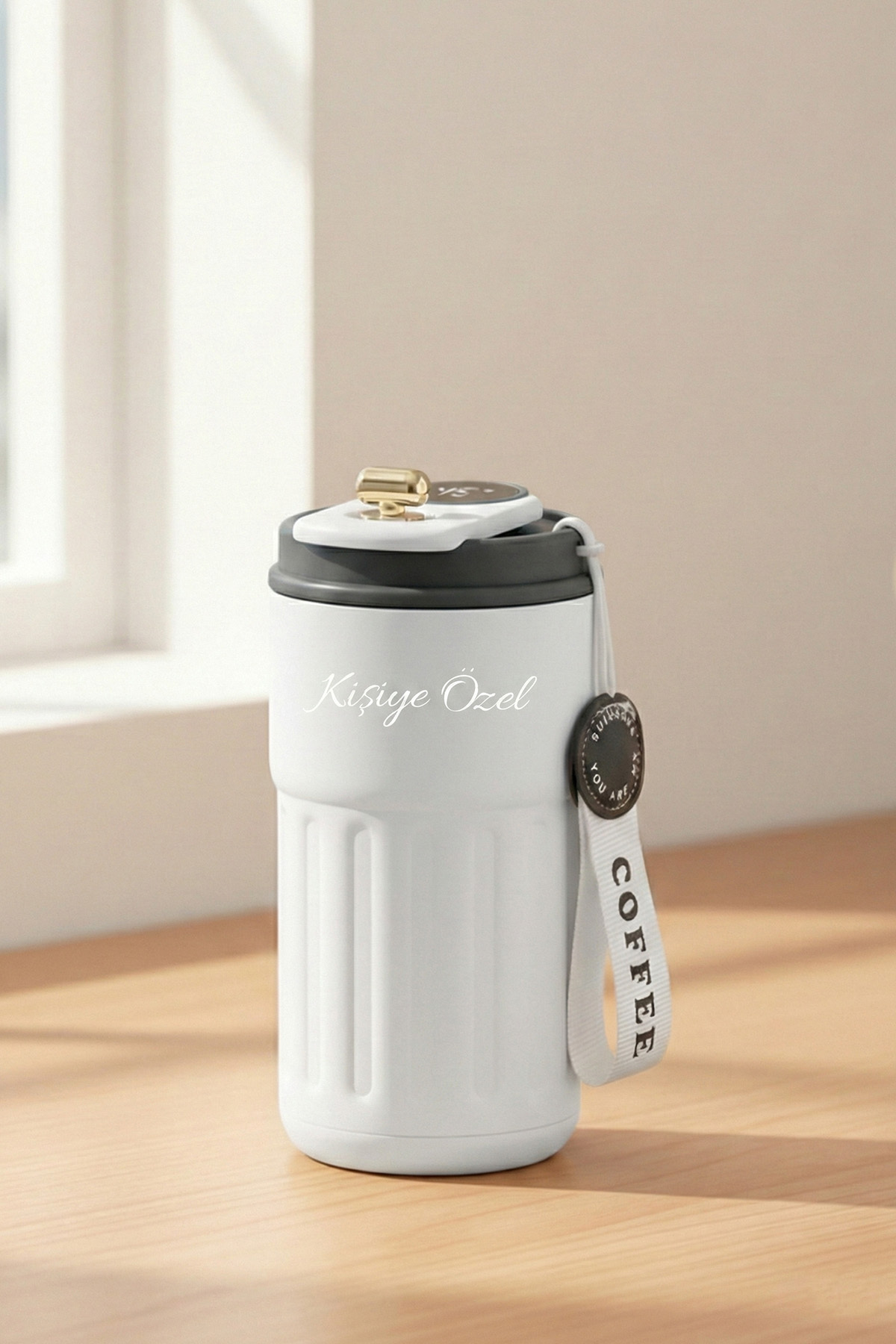 Giftino Kişiye Özel Dijital Isı Göstergeli Paslanmaz 304 White Çelik Bardak Termos Mug Kupa 400ml