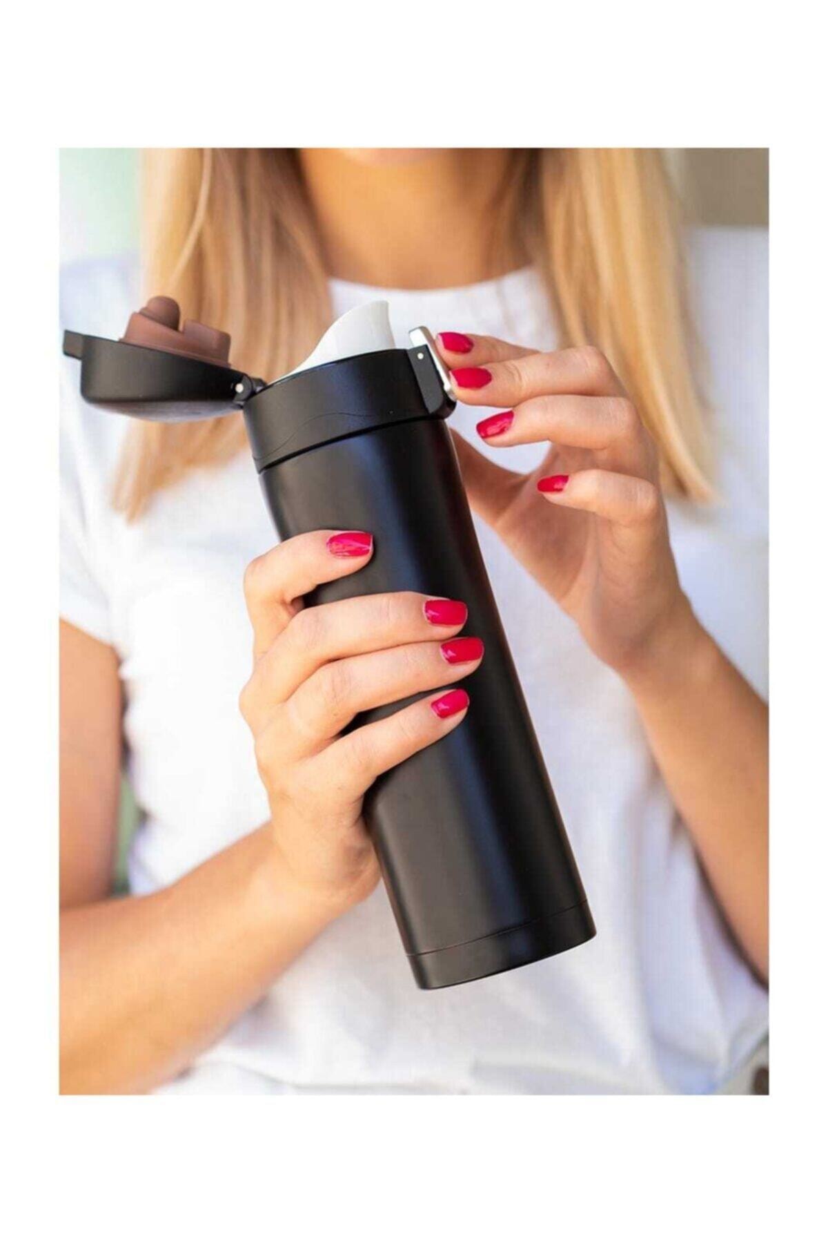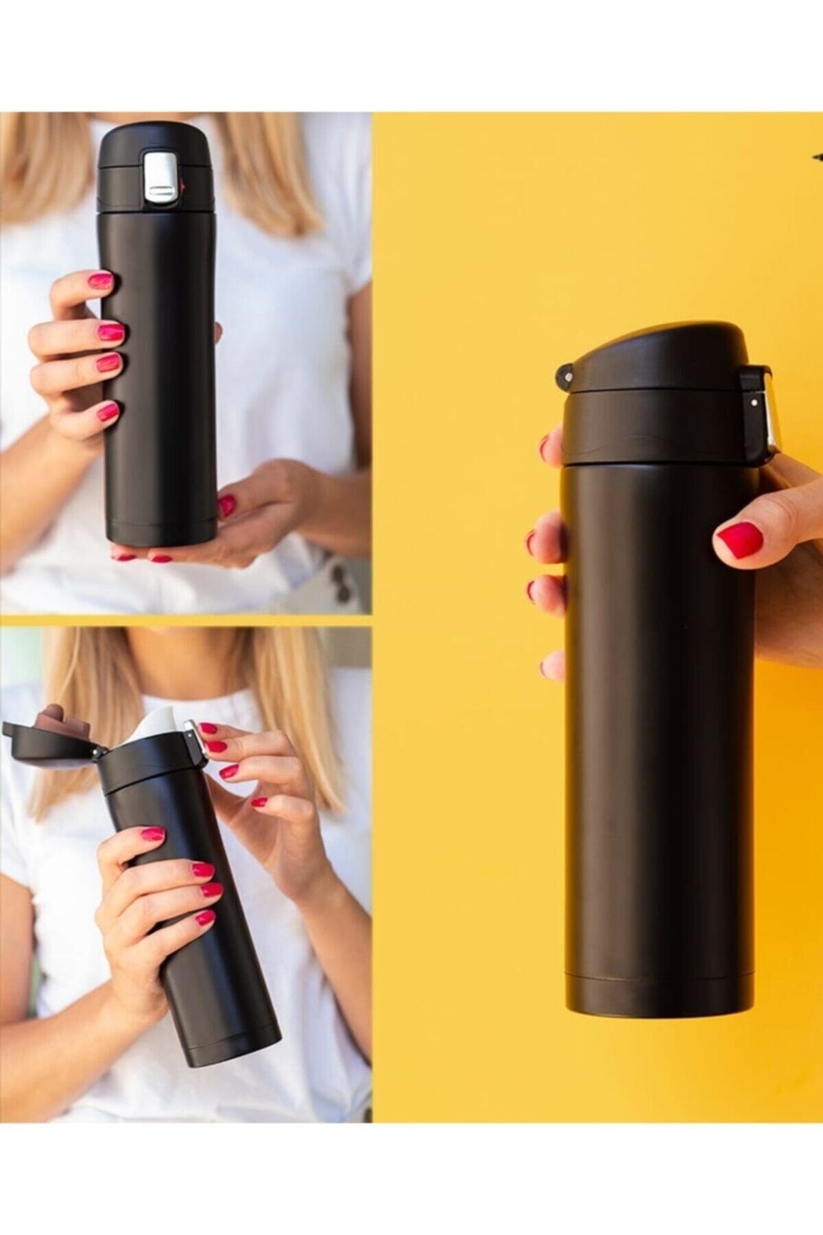 GIFTS STORE Termos Siyah 45o Ml ( Kaliteli Çift Katmanlo Paslanmaz Çelik , El Yakmaz ) Kilitli Kapak Sistemi