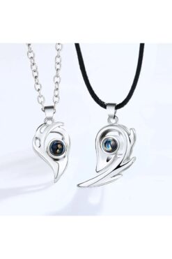 GLANZEND 2’li 100 Dilde Seni Seviyorum Mıknatıslı Kalpli Sevgili Çift Kolyesi