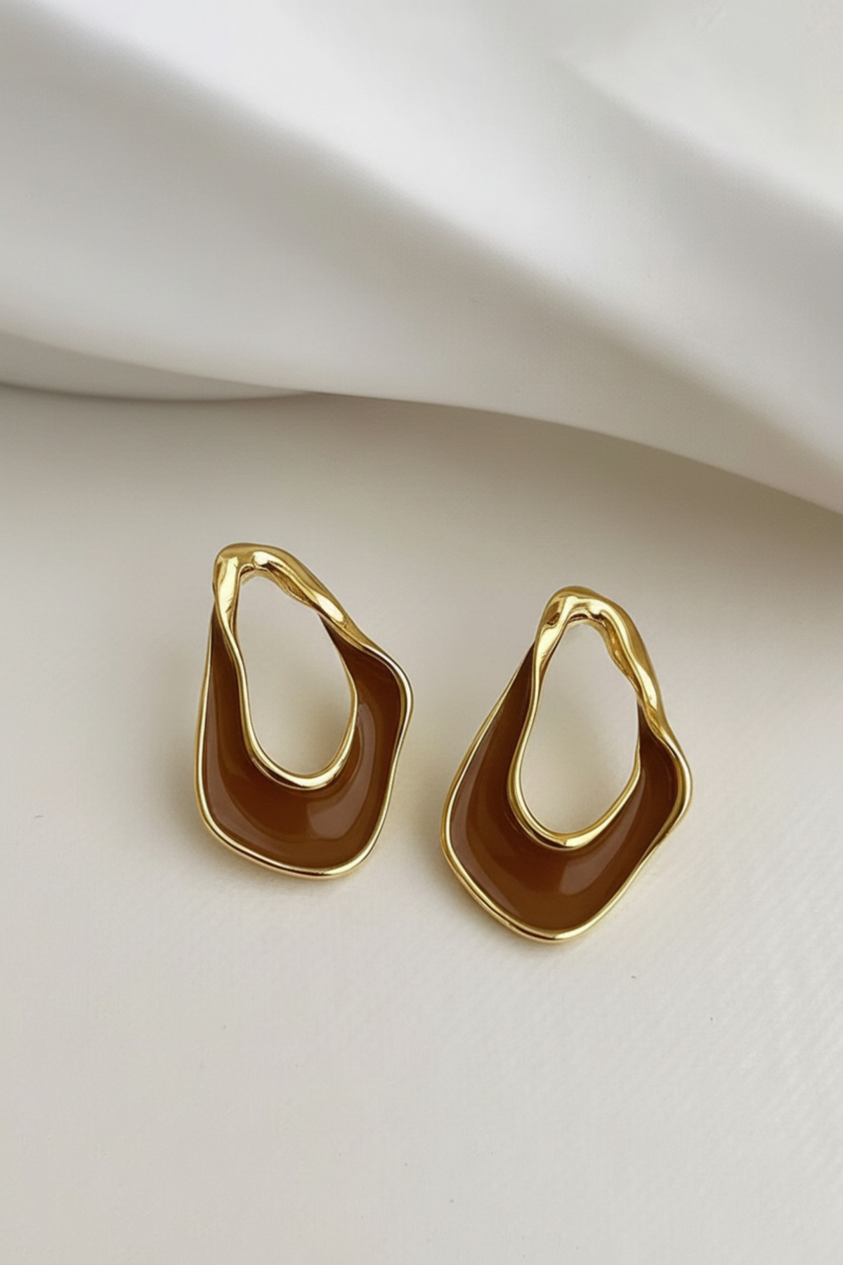 Glaren Asimetrik Kahve Mineli Altın Renk Kadın Küpe