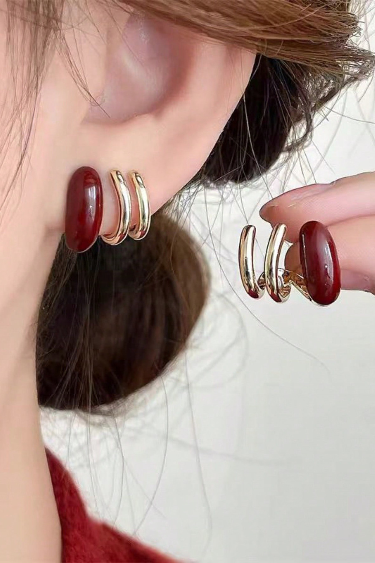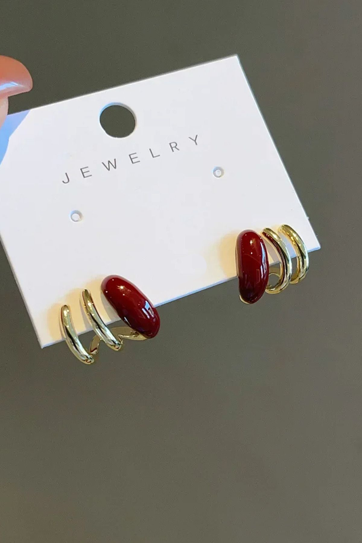 Glaren Bordo Mineli Üç Sıralı Altın Renk Kadın Küpe