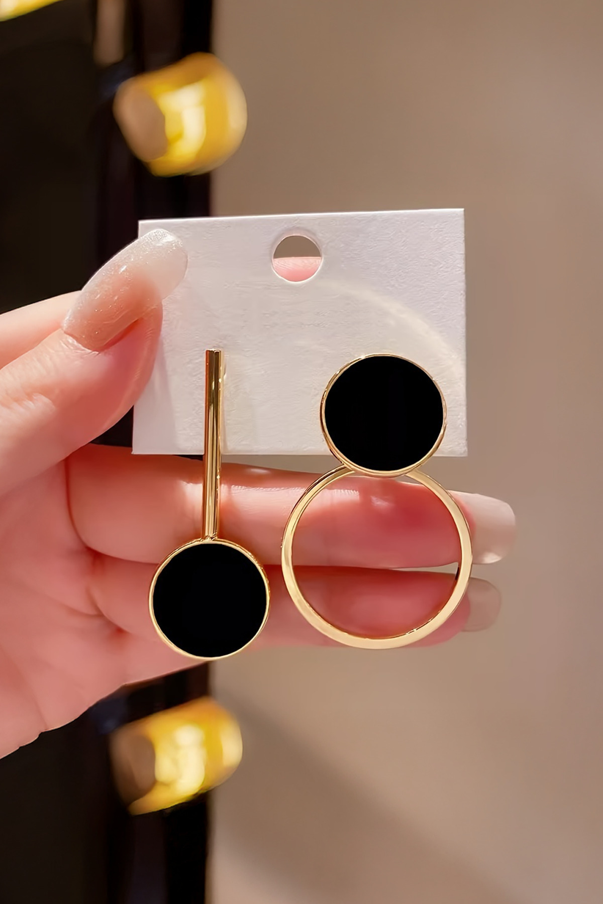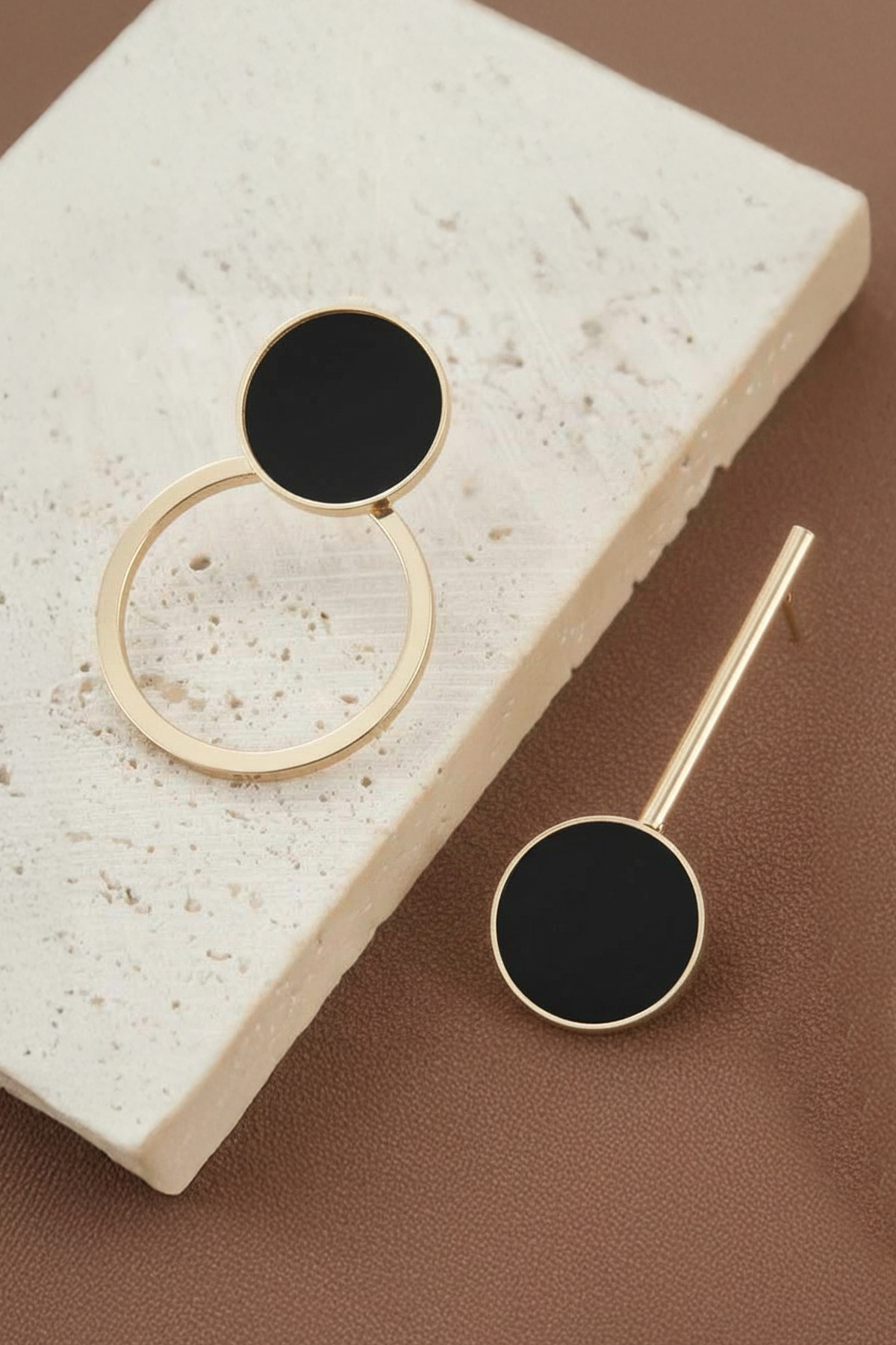 Glaren Siyah Mineli Asimetrik Daire Altın Renk Kadın Küpe
