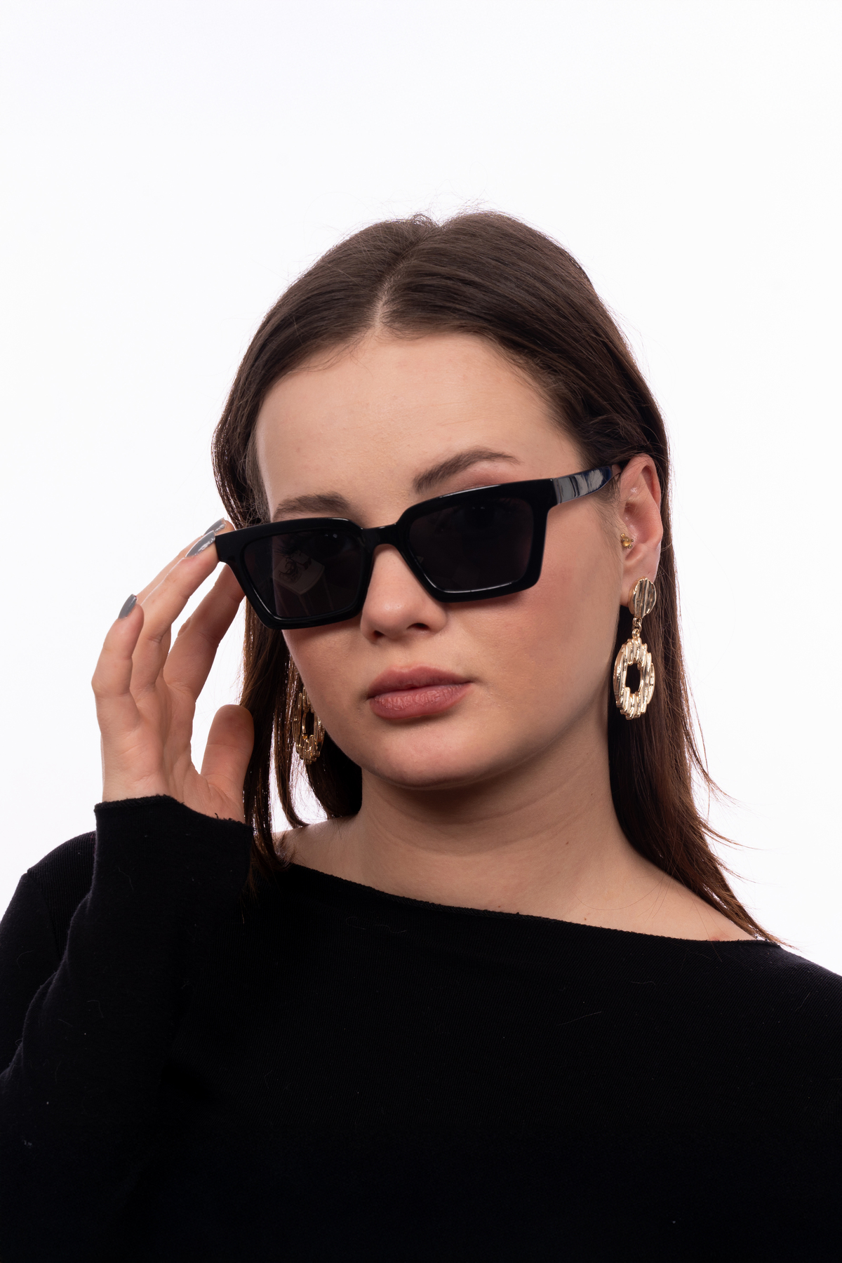 MACERATİ Selin Siyah Kare Gold Detaylı Ultra Hafif UV400 Filtreli Kadın Güneş Gözlüğü