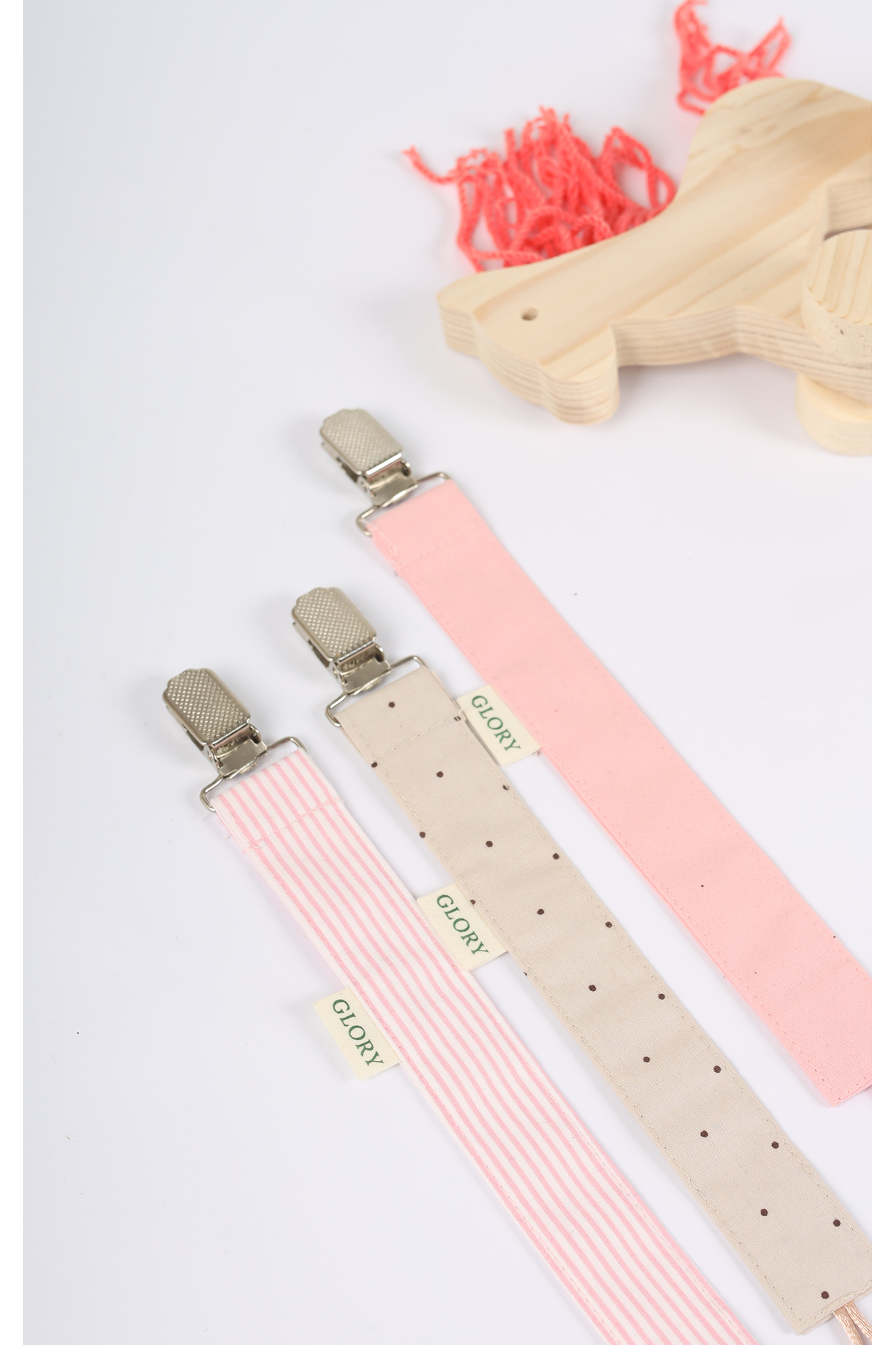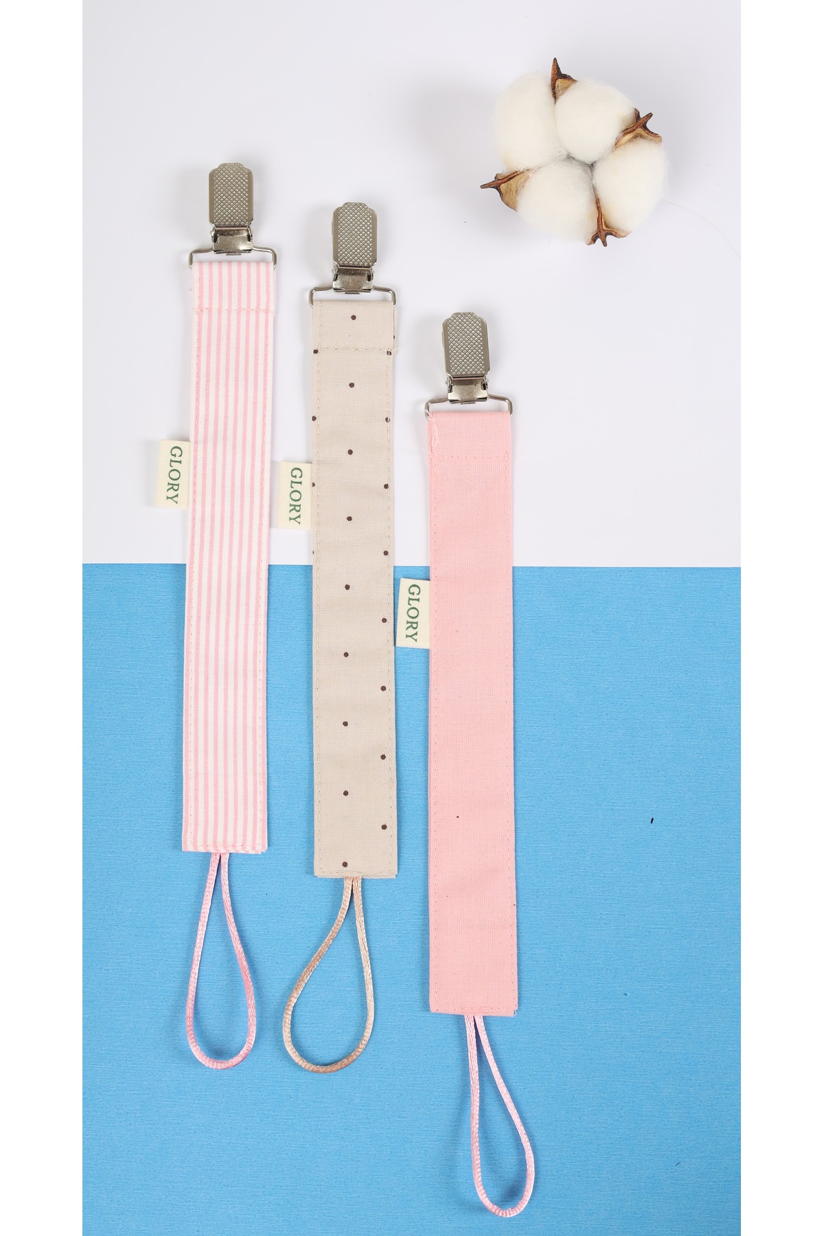 GLORY BABY Emzik Askısı 3'lü Set - Emzik Zinciri - Emzik Tutacağı - %100 Pamuk - Pembe Çizgili, Kahve Nokta ürünü ucuz fiyat, hızlı kargo imkanı ile hemen sitemizden sipariş verin.
