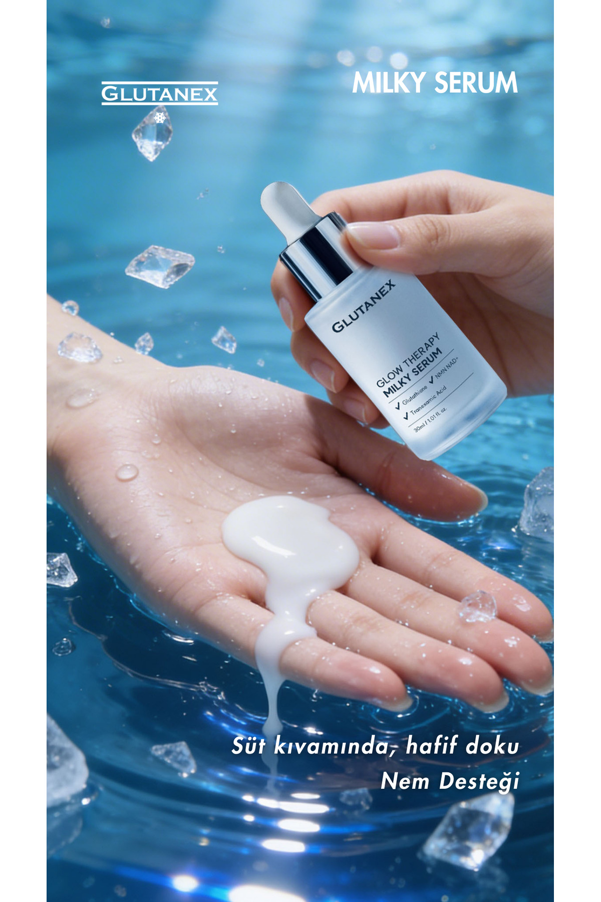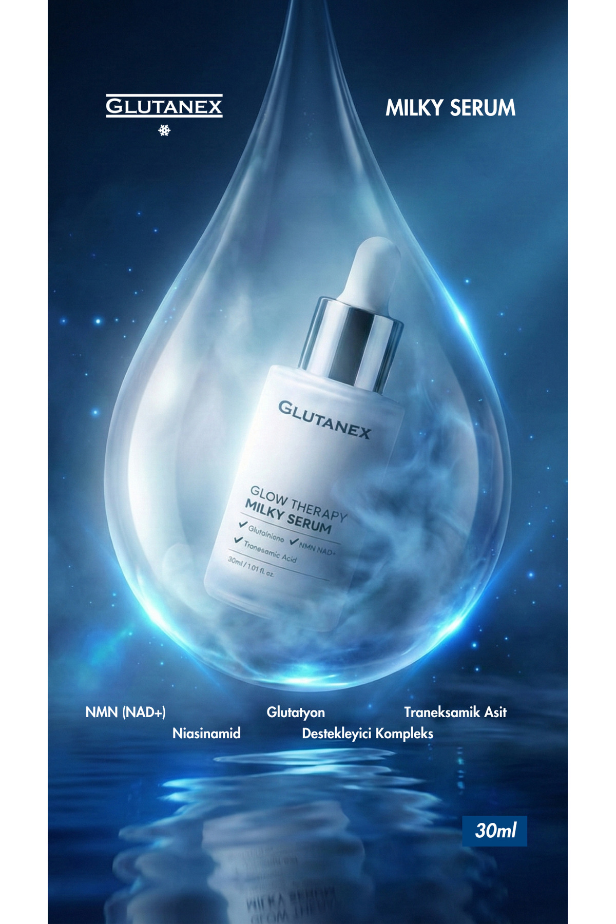 GLUTANEX Glow Therapy Milky Serum 30 ml – Glutatyon NMN NAD+ Traneksamik Asit İçeren Aydınlatıcı Serum ürünü ucuz fiyat, hızlı kargo imkanı ile hemen sitemizden sipariş verin.