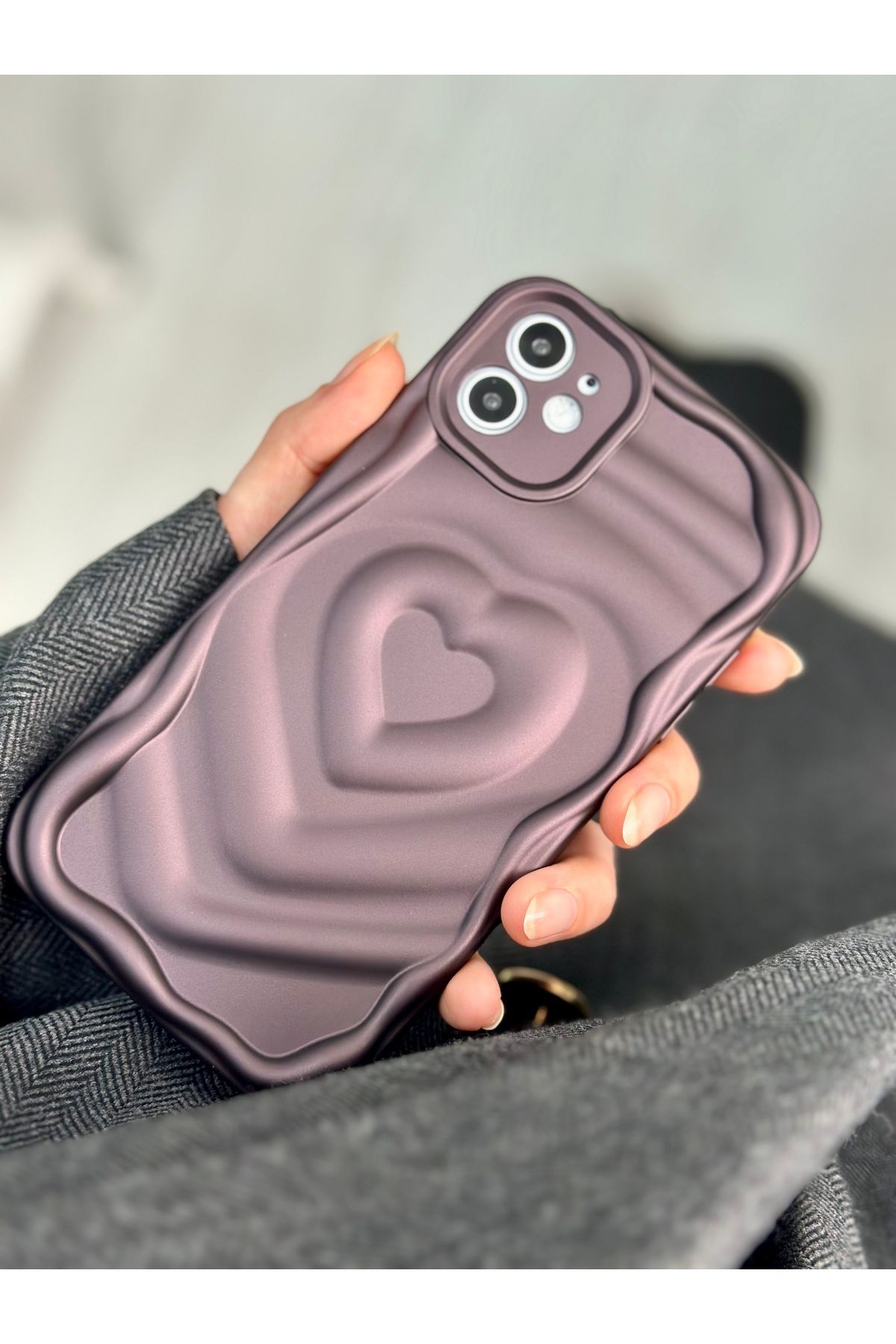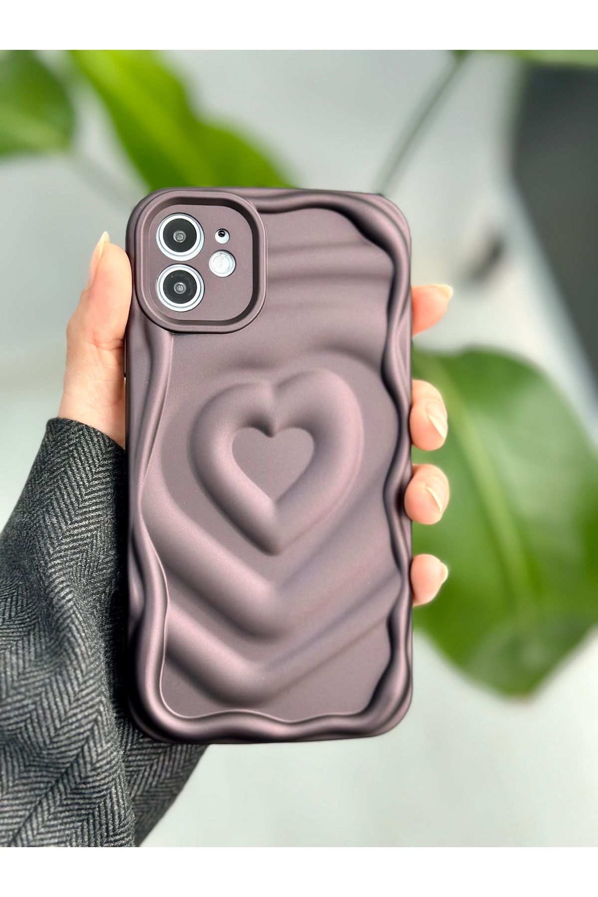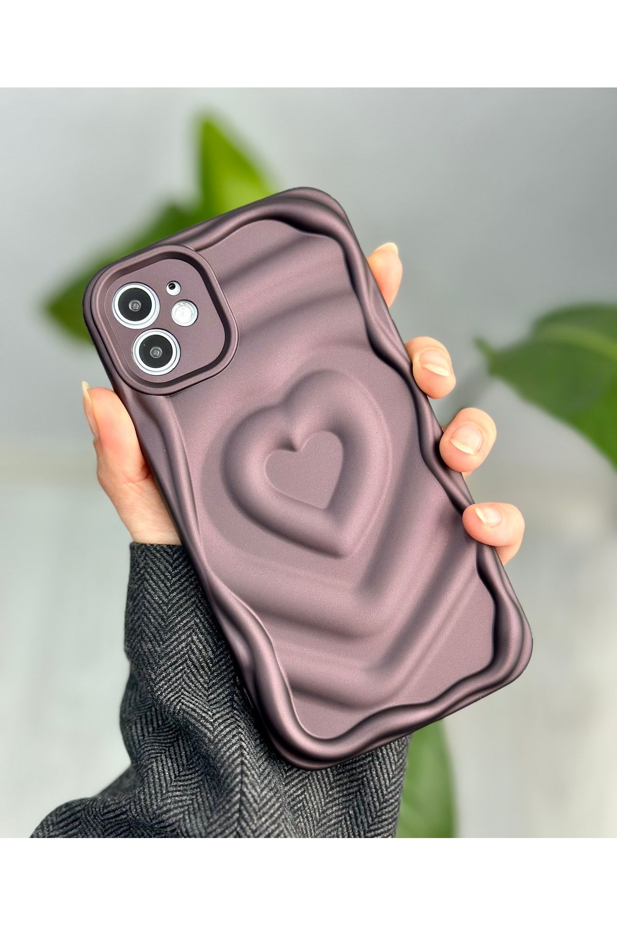iPhone 11 modelinize özel tasarlanmış, telefonunuzu darbelere ve çizilmelere karşı koruyan 3D mat kabartma kalp desenli arka kapak