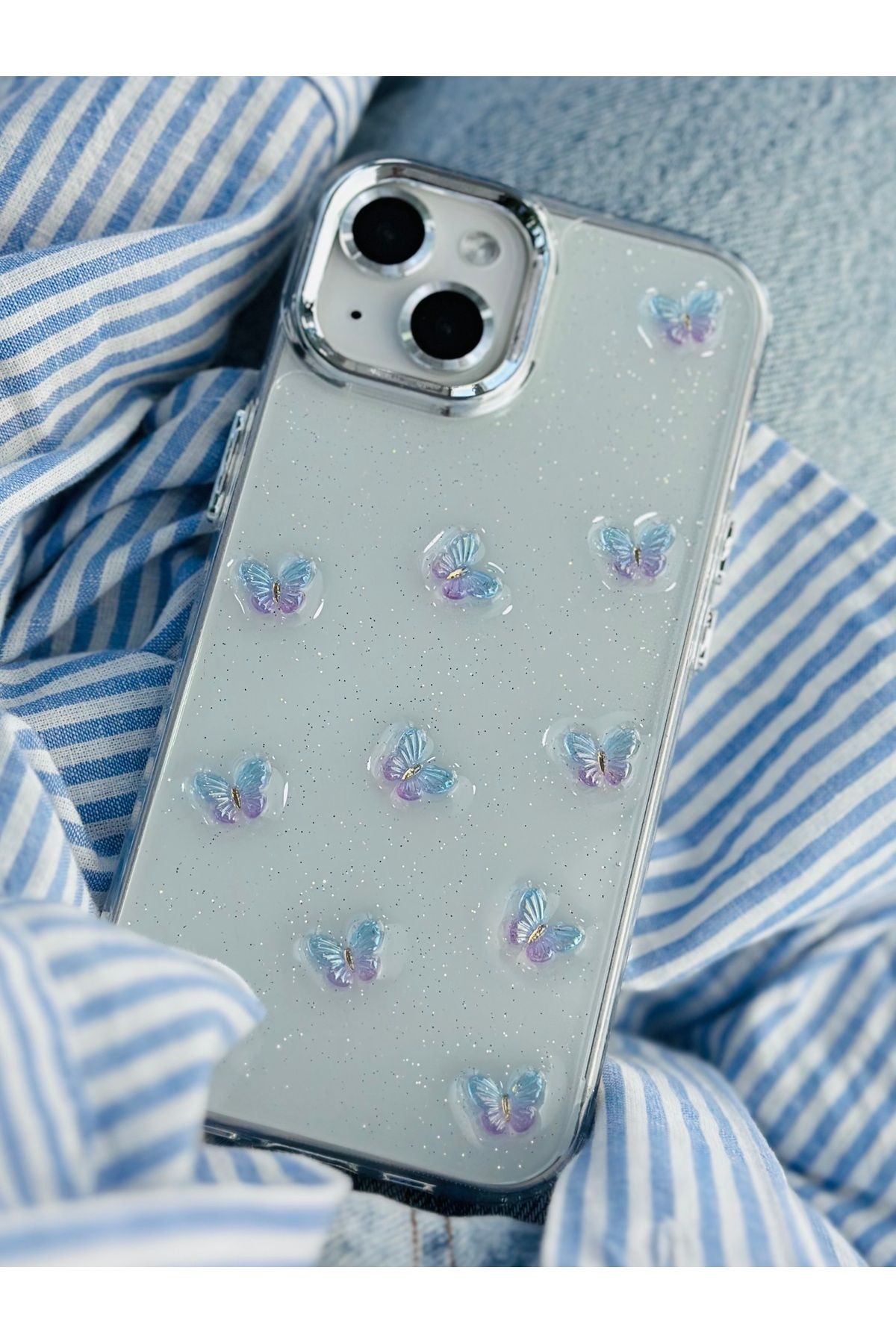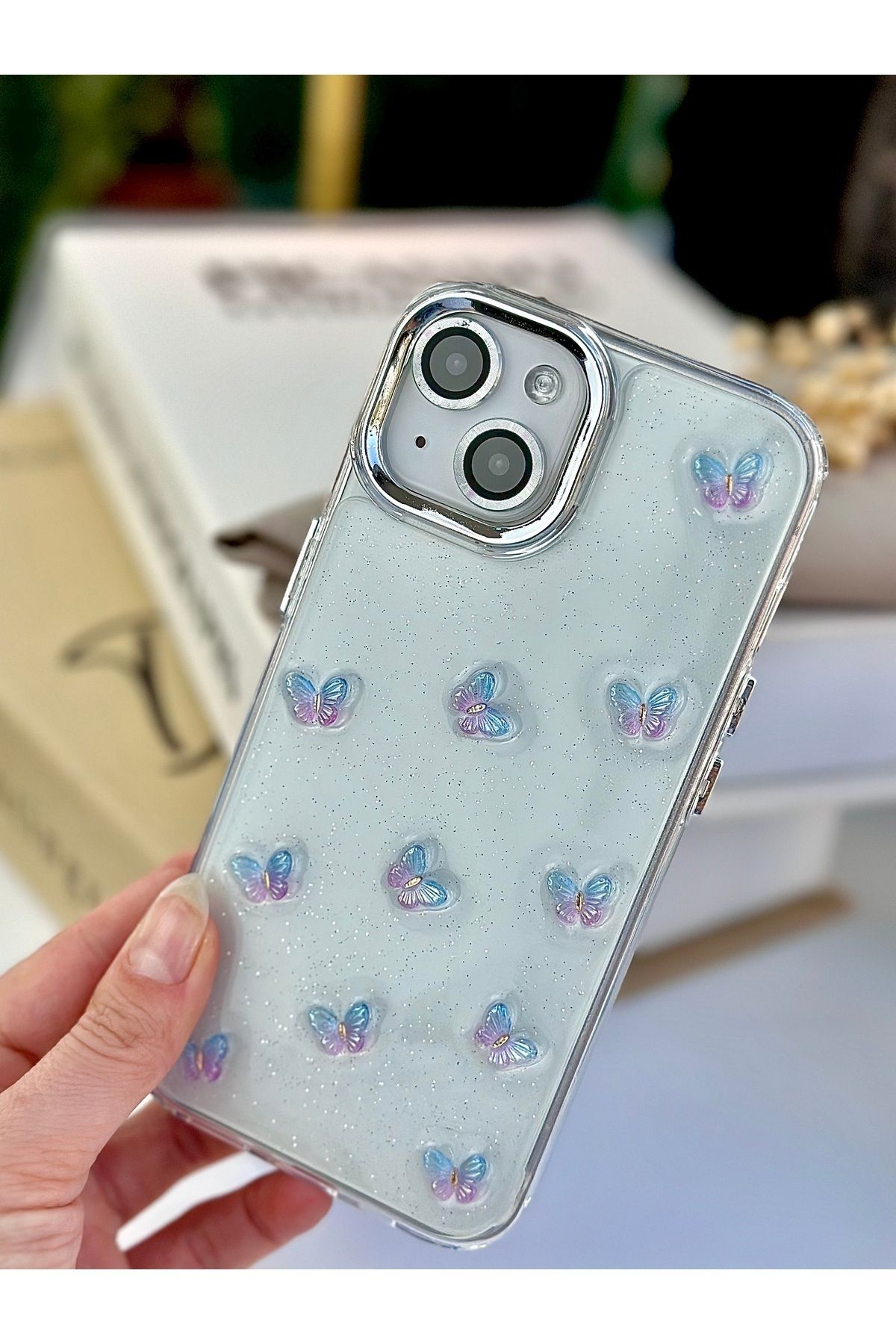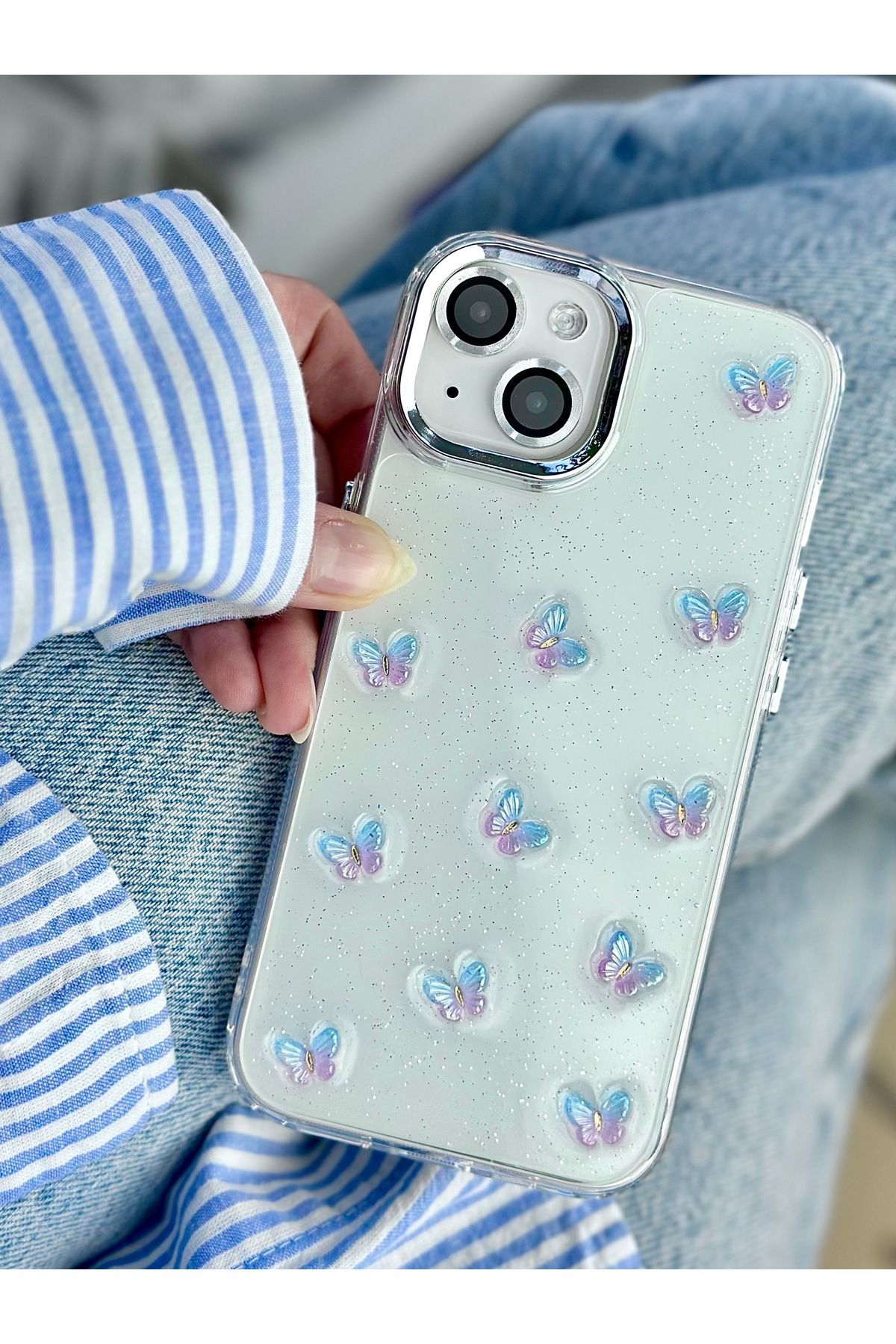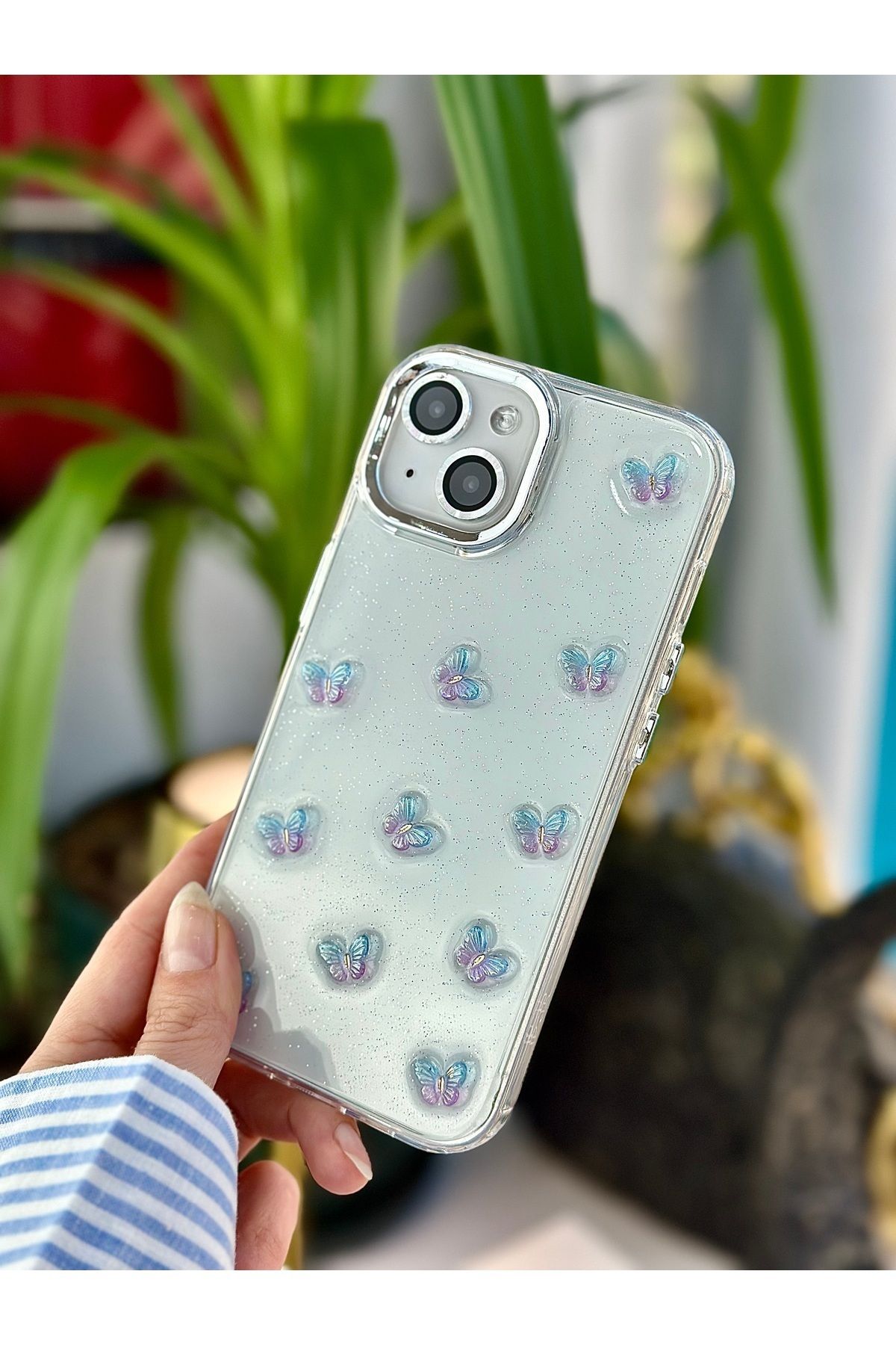 Go Aksesuar Apple Iphone 13 – 14 – 15 Uyumlu 3d Mini Kelebek Epoksili Silikon Telefon Kılıfı