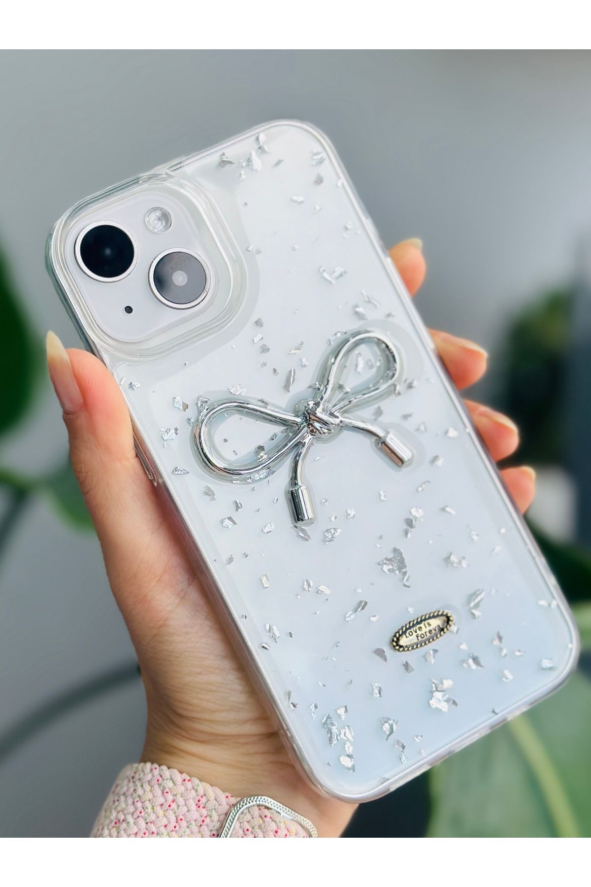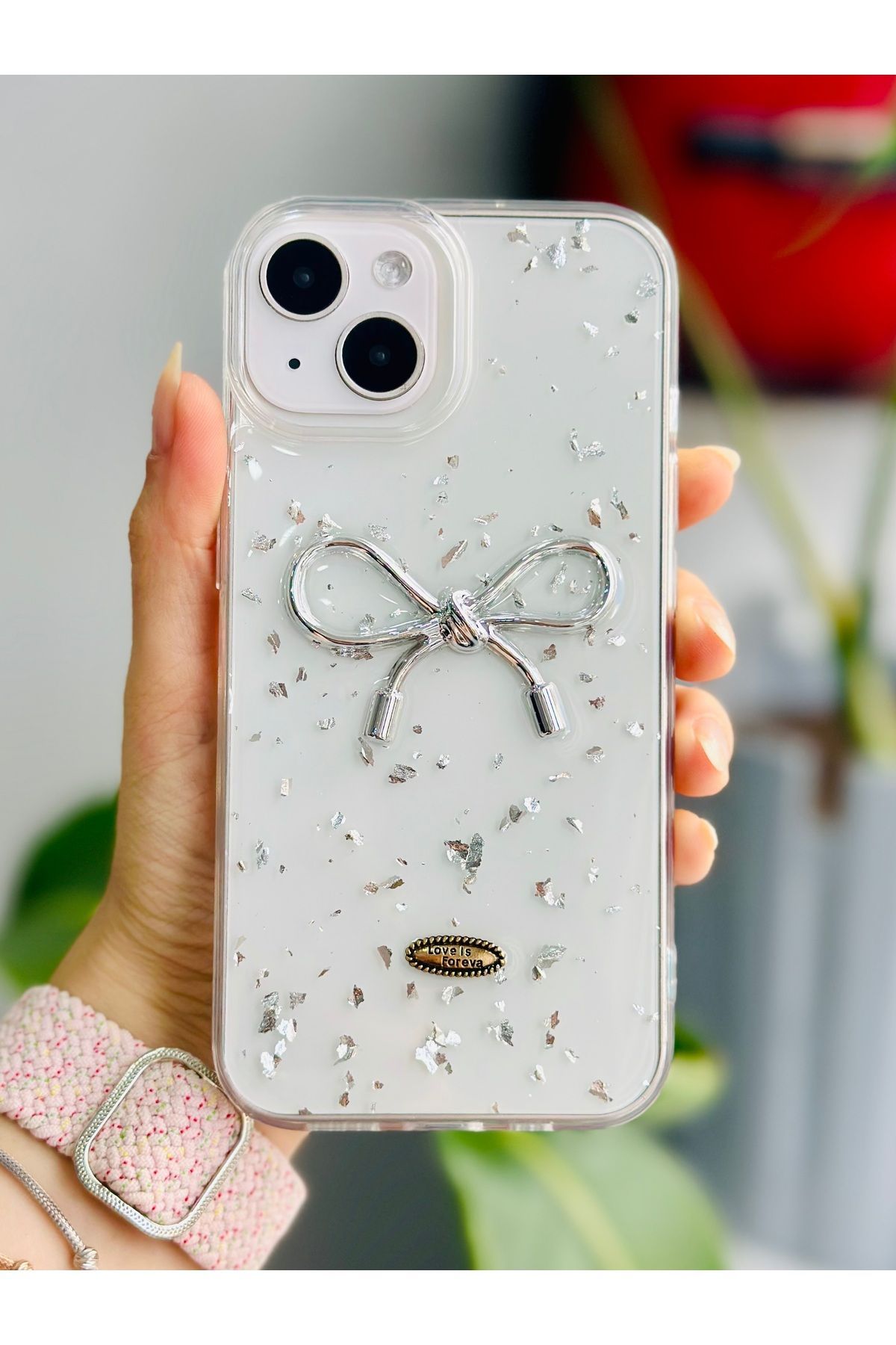 Go Aksesuar Apple Iphone 13 – 14 – 15 Uyumlu Şeffaf Simli Kurdele Epoksili Telefon Kılıfı