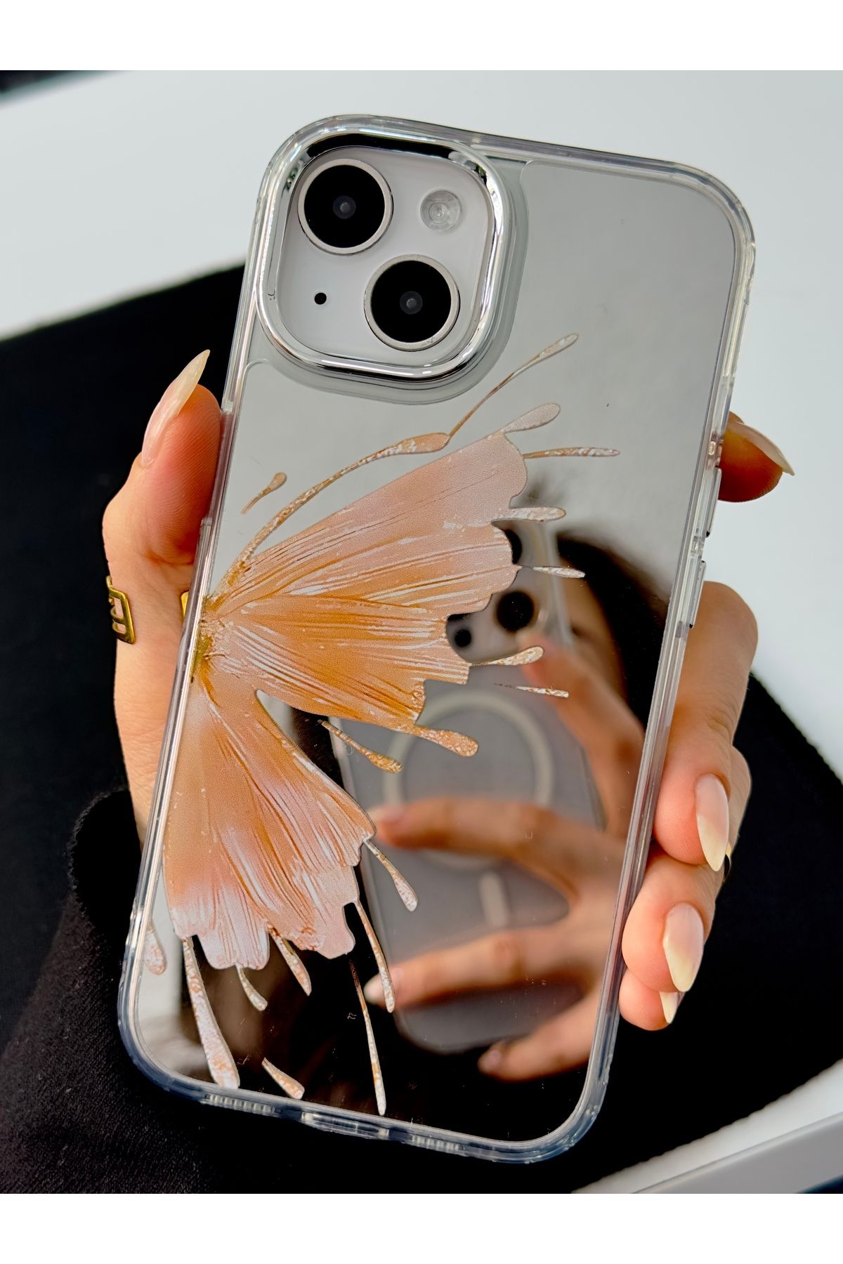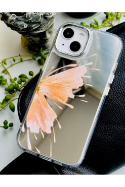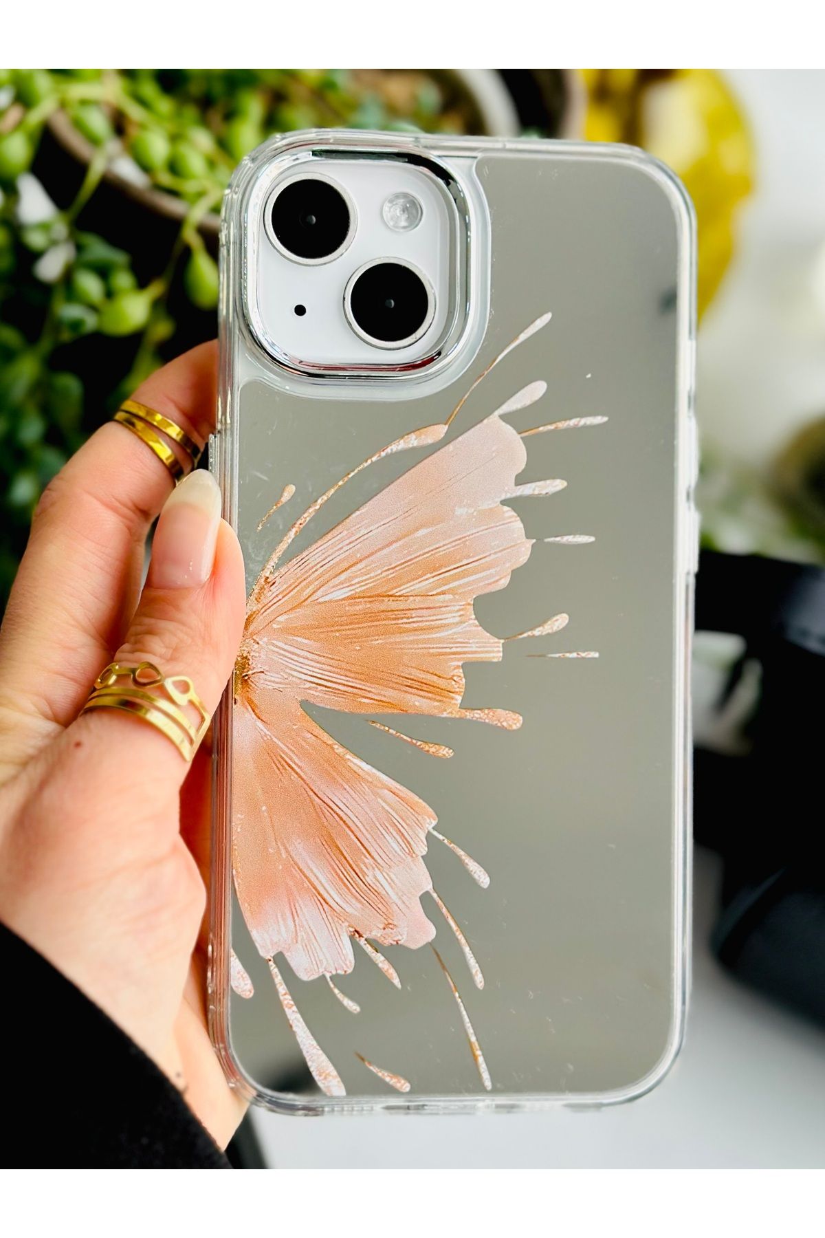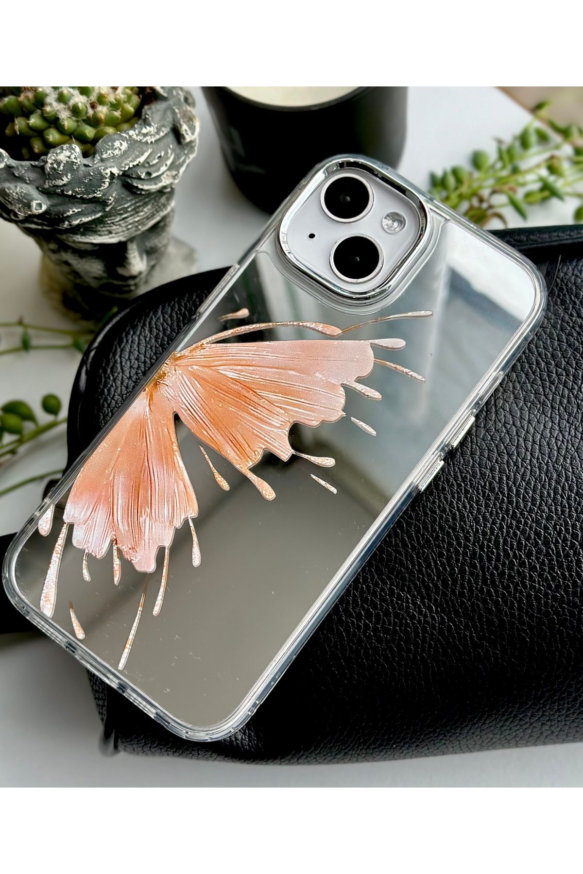 Go Aksesuar Iphone 13 – 14 – 15 Uyumlu Aynalı Gold Kelebek Model Silikon Kılıf