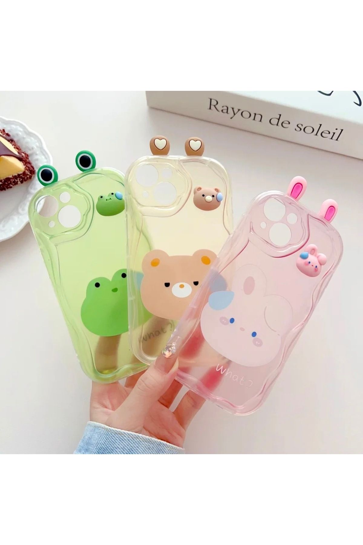 Go Aksesuar Iphone 13 Ve 14 Uyumlu Kulaklı Tasarımlı Oyuncaklı Şeffaf Silikon Kılıf