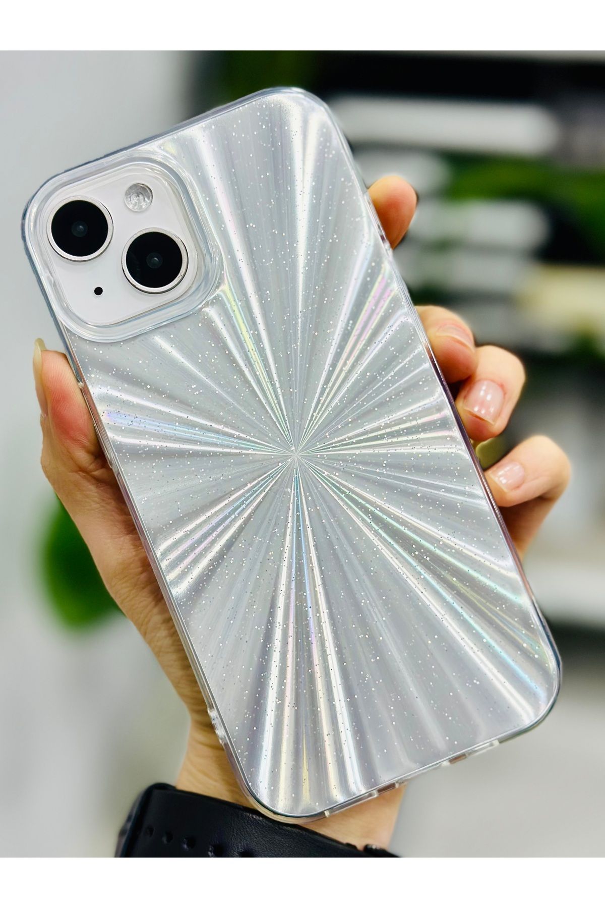 Go Aksesuar Iphone 14 Plus – 15 Plus Uyumlu Gümüş Prizma Tasarımlı Kenarları Silikon Kılıf