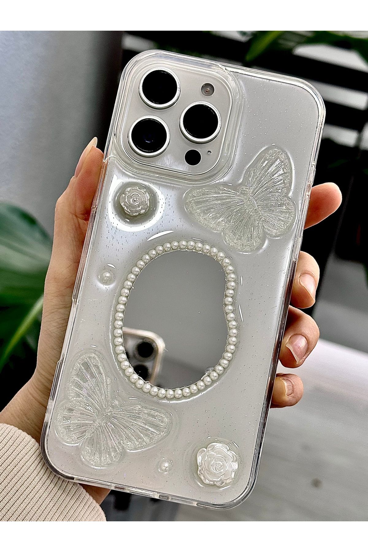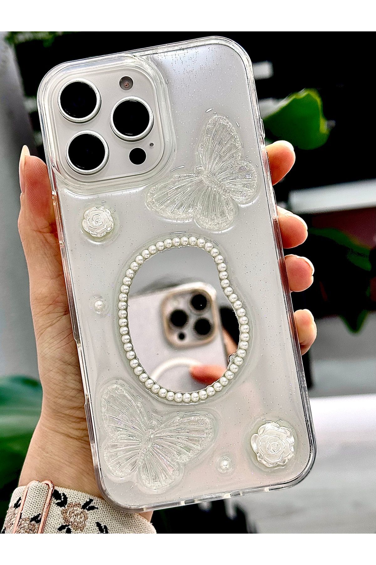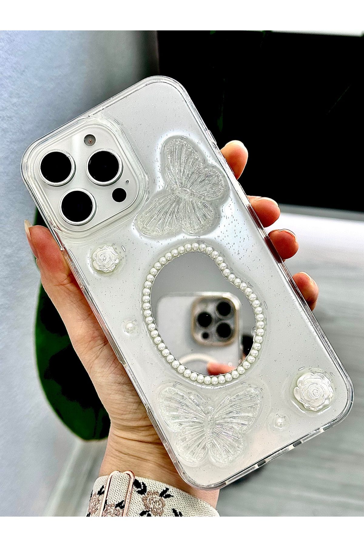Go Aksesuar Iphone 16 Promax Uyumlu Aynalı Kelebek Tasarımlı Silikon Kılıf