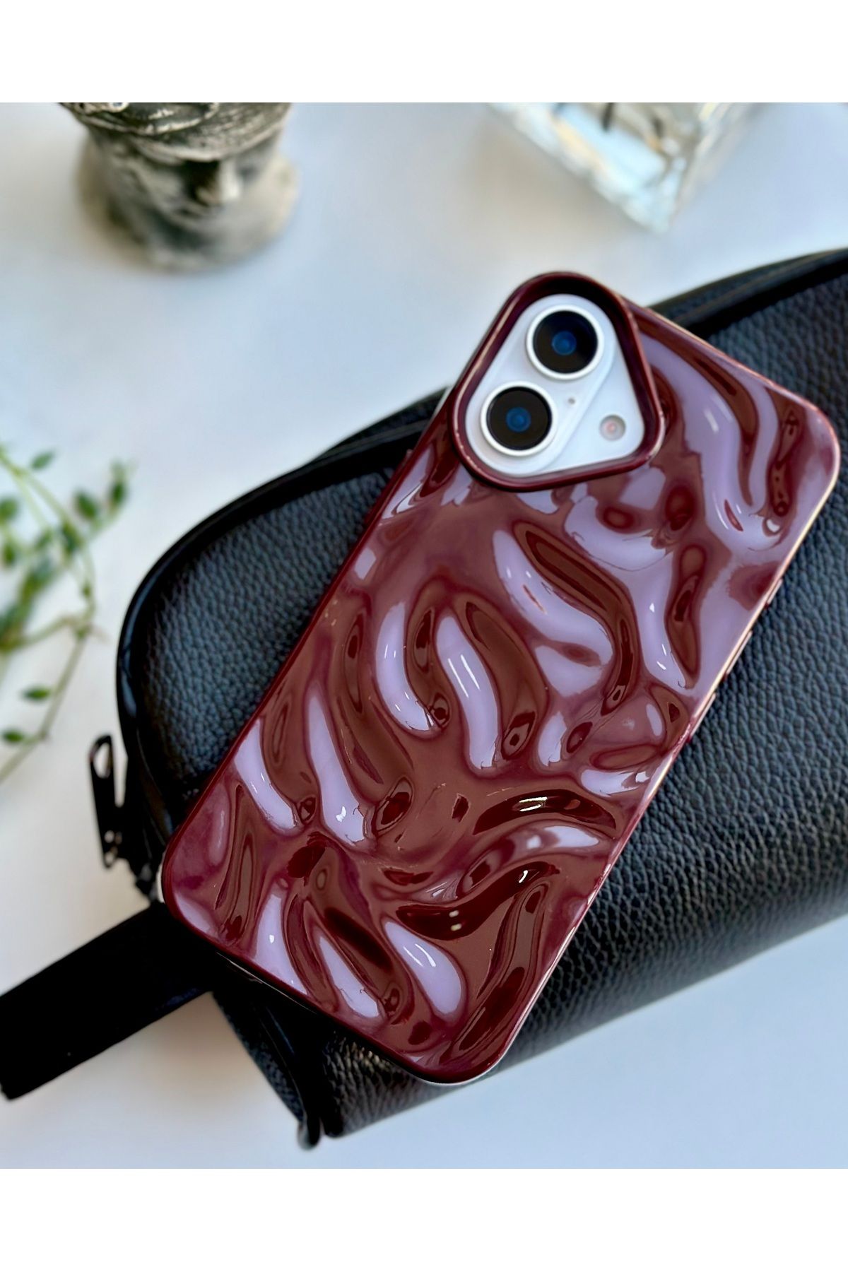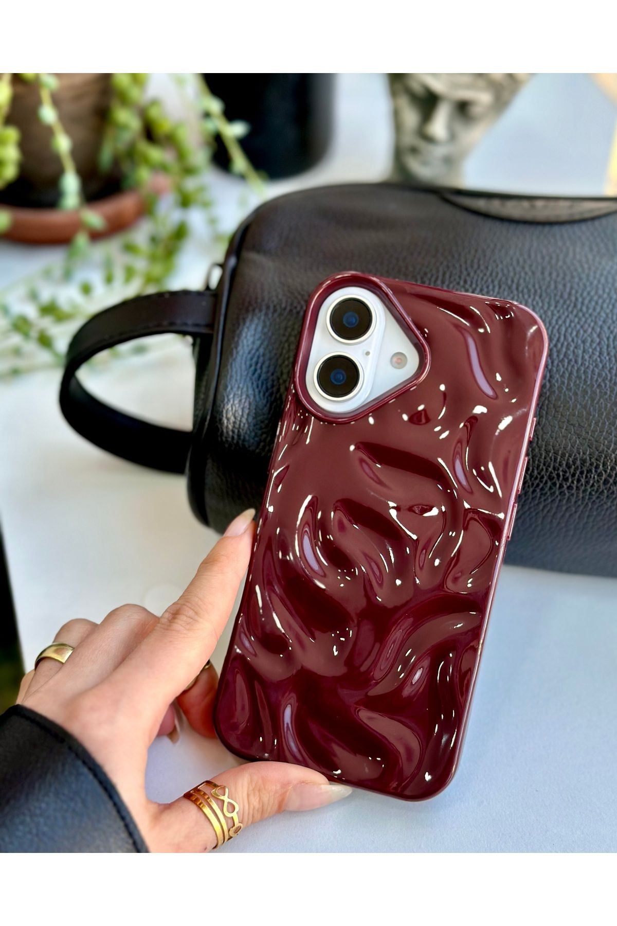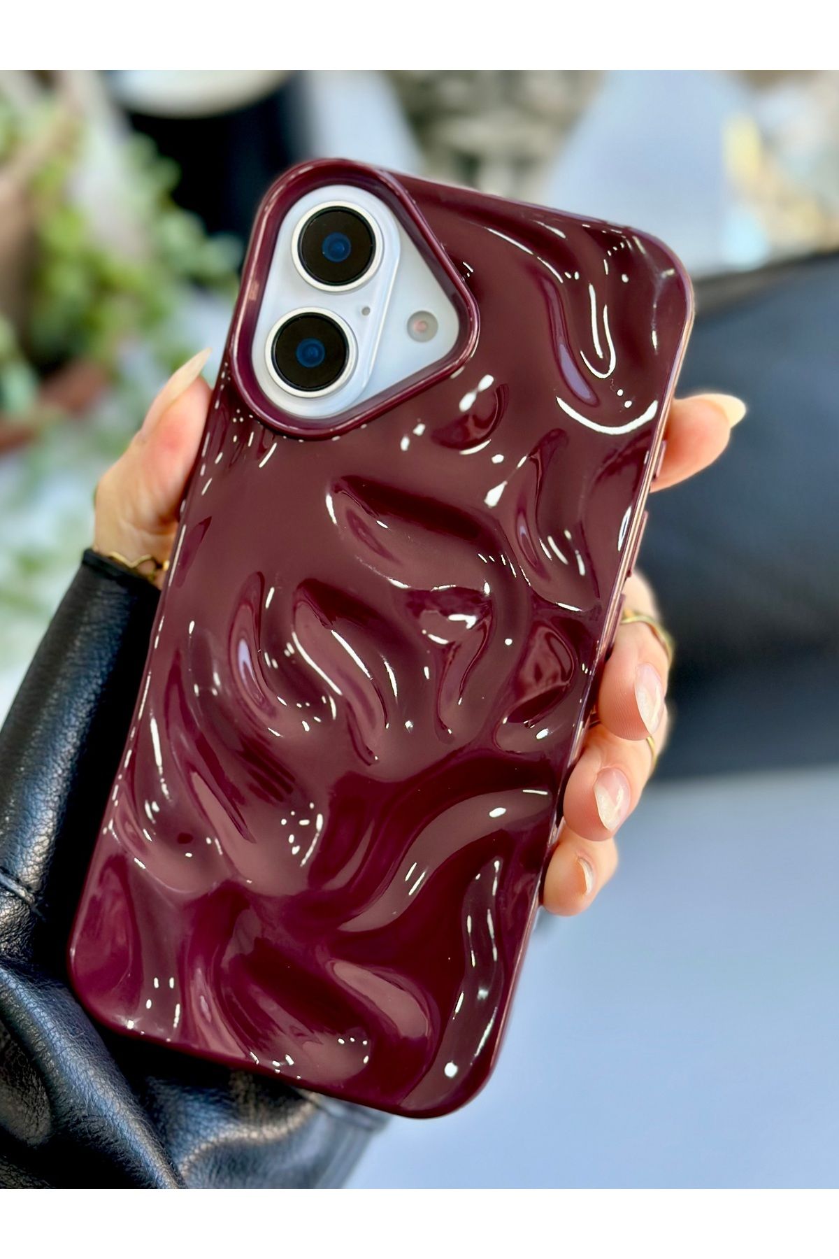 Go Aksesuar Iphone 16 Uyumlu 3d Kabartma Parlak Bordo Silikon Kılıf