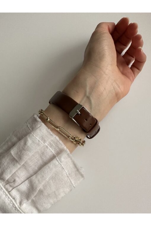 Arzu Butik Gold Renk Metal Kordon Kadın Kol Saati Ve Kombin Bileklik Seti