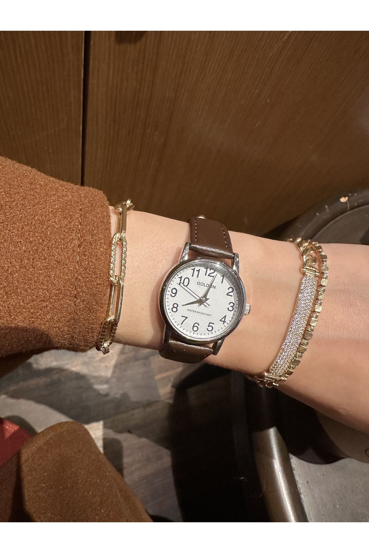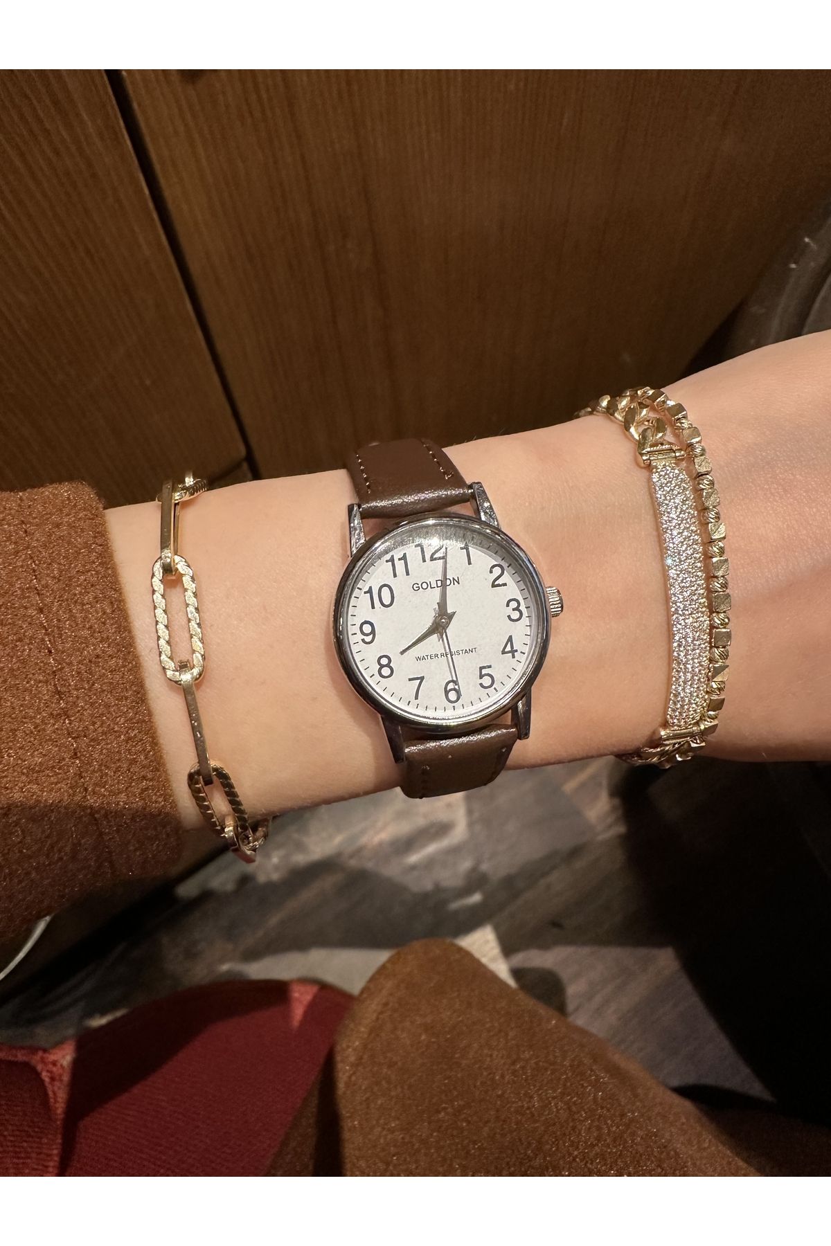 GOLDON Vintage Stil Deri Kayışlı Kol Saati