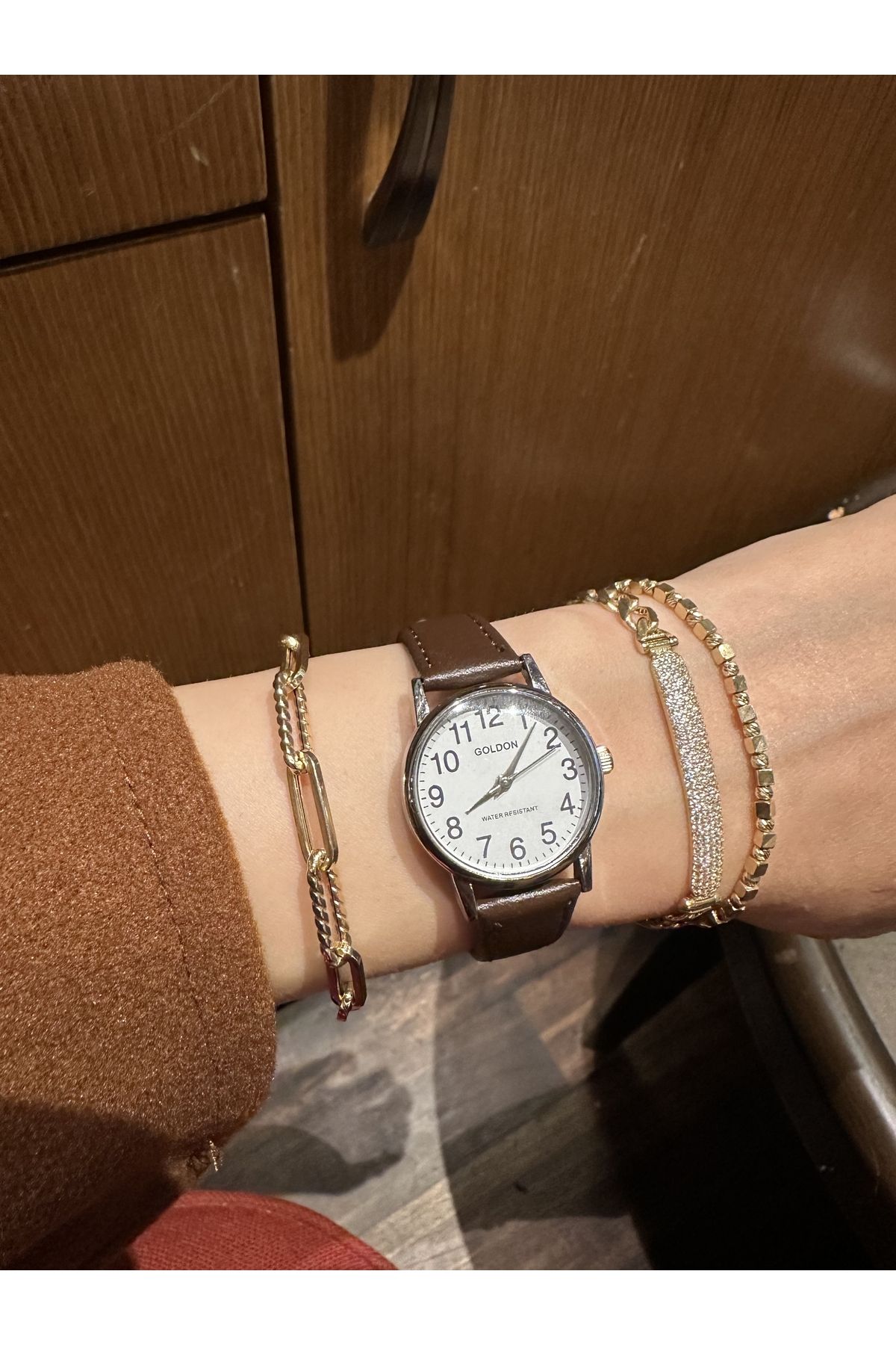 GOLDON Vintage Stil Deri Kayışlı Kol Saati ürünü ucuz fiyat, hızlı kargo imkanı ile hemen sitemizden sipariş verin.