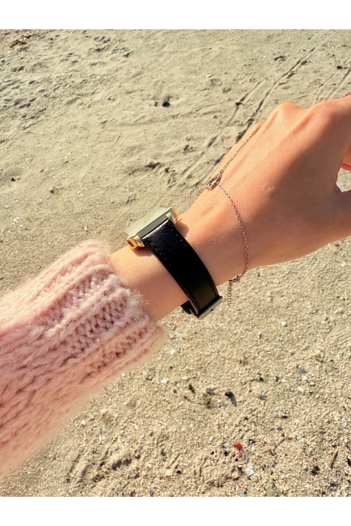 Deri kordon materyali konforlu bir kullanım sunarken, vintage deri kayışla estetik bir dokunuş ekler.
