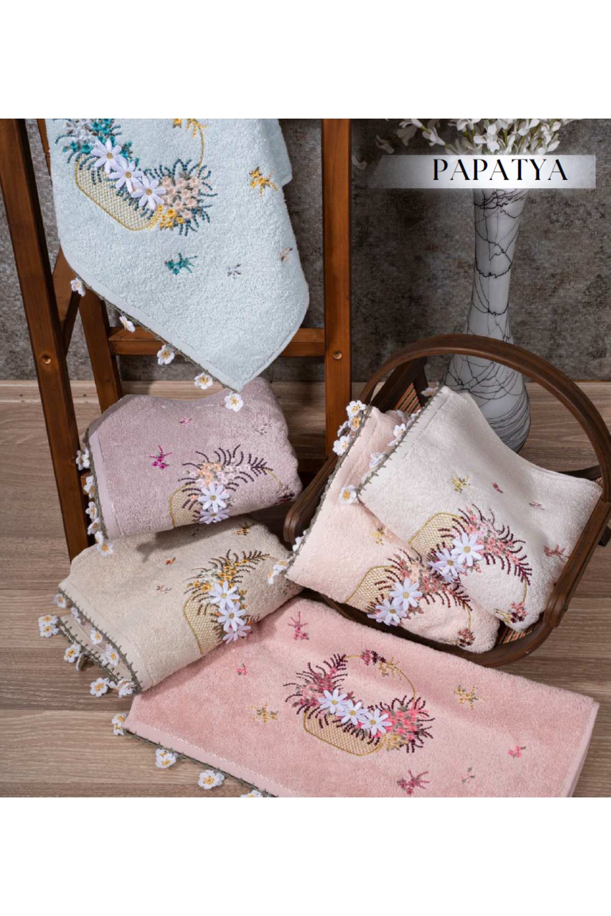 GONCA TEKSTİL El işi Dantelli Papatya 50×90 cm Yüz havlusu