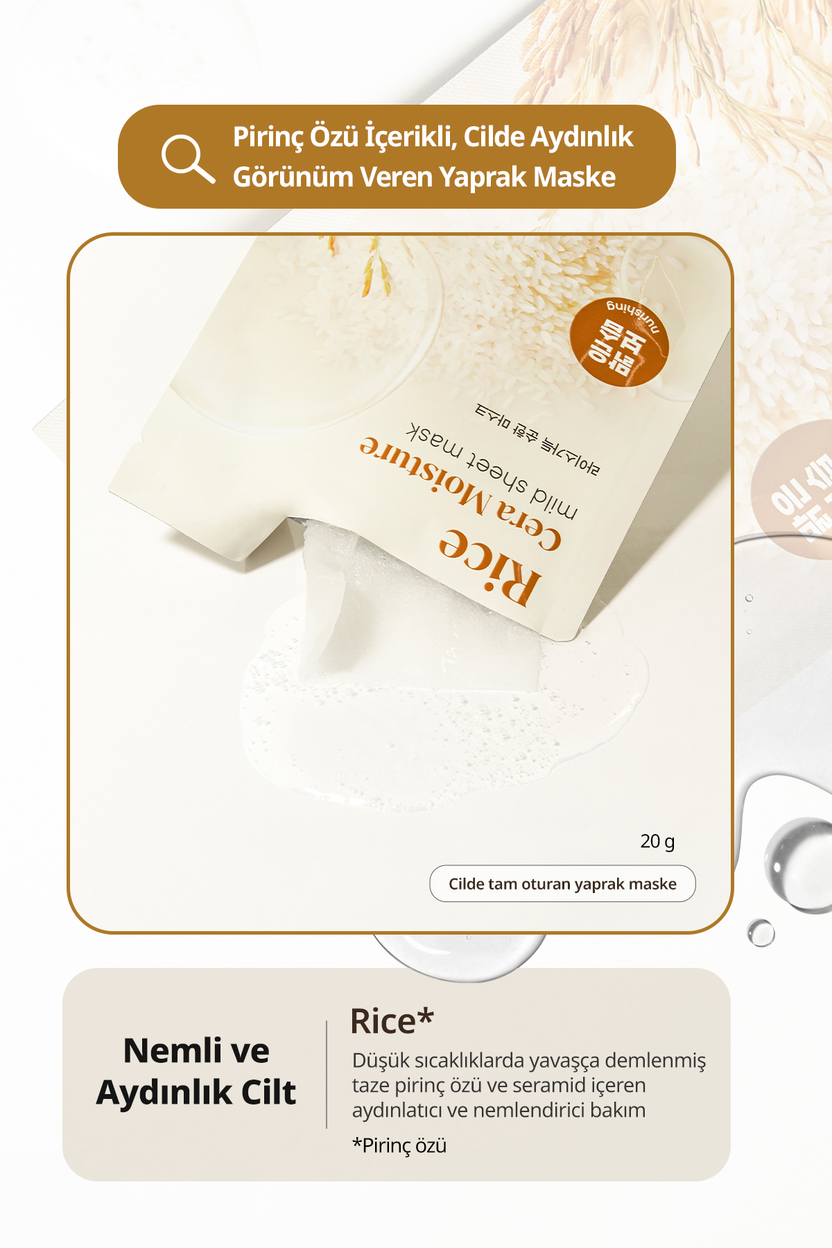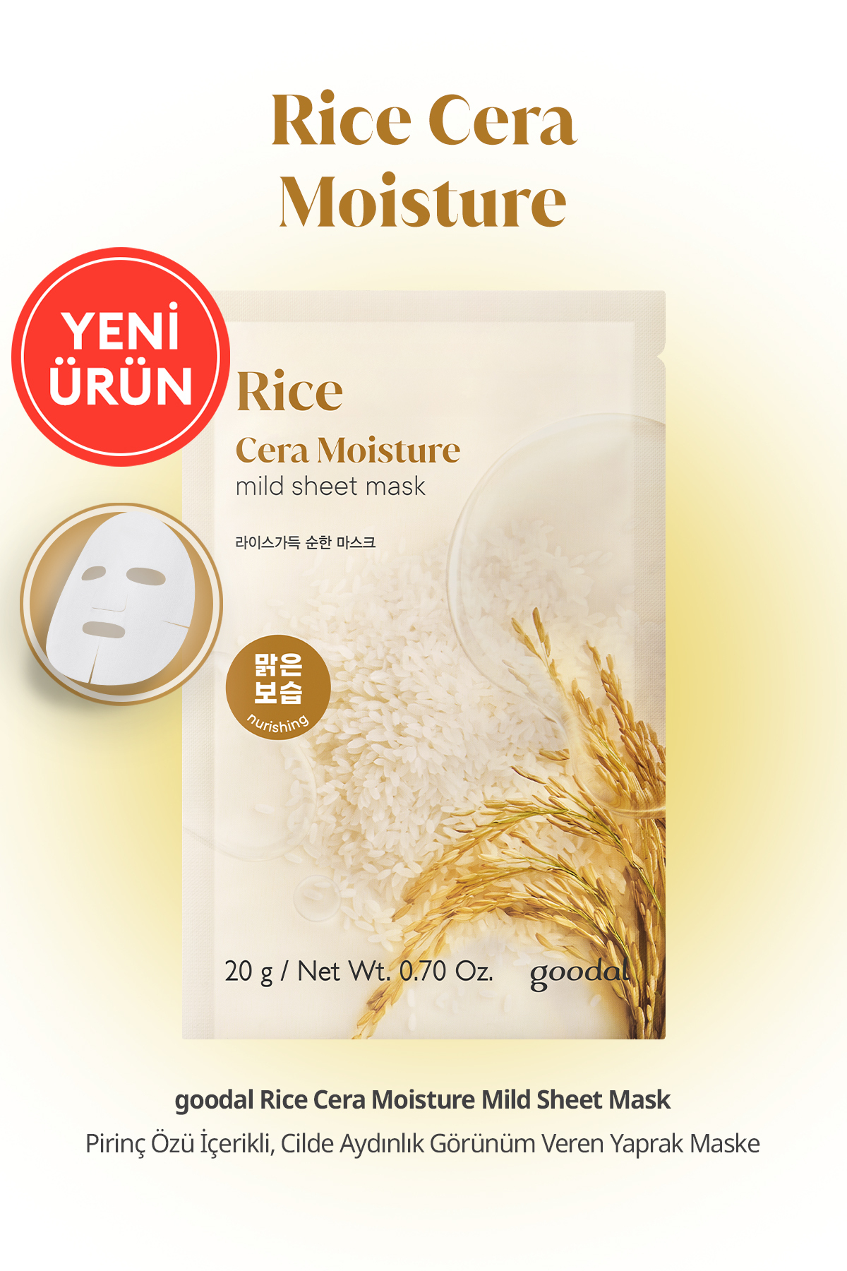 Goodal Pirinç Özlü, Cilde Aydınlık Görünüm Veren Yaprak Maske GOODAL Rice Cera Moisture Mild Sheet Mask