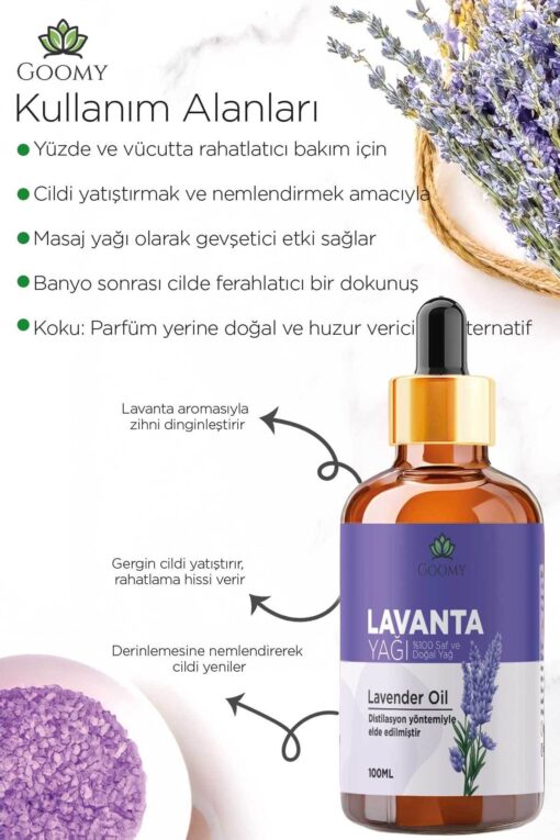 GOOMY Lavanta Uçucu Yağı 100 ml %100 Doğal Ve Saf Lavender Essential Oil ürünü ucuz fiyat, hızlı kargo ve kredi kartına 12 ay taksit imkanı ile hemen sitemizden sipariş verin.