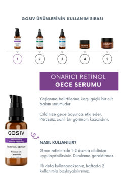 Gosiv Onarıcı Retinol (A Vitamini) Gece Serumu (Retinol 1% + Ceramide) ürünü ucuz fiyat, hızlı kargo imkanı ile hemen sitemizden sipariş verin.