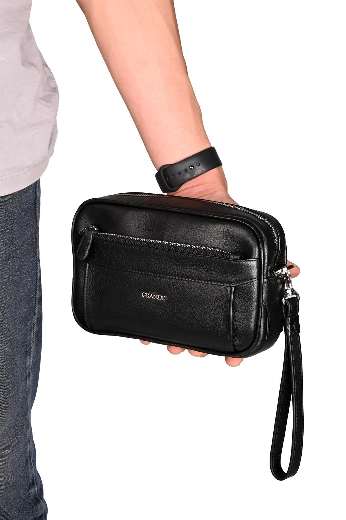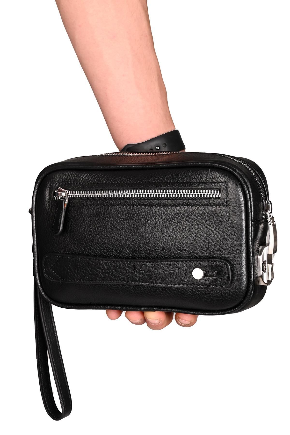 Grande 4288 Hakiki Deri Kilitli El Portföy Çantası Siyah