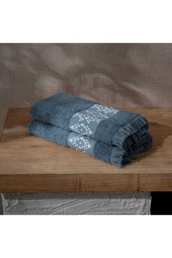 Green Black Hereke 2’li El Yüz Havlusu Seti %100 Pamuk Jakarlı Koyu Mavi 50×80 Cm