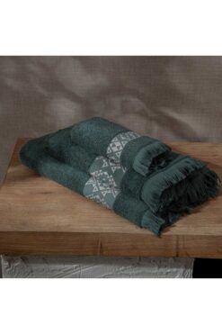 Green Black Hereke 3’lü Havlu Seti %100 Pamuk Jakarlı Yeşil