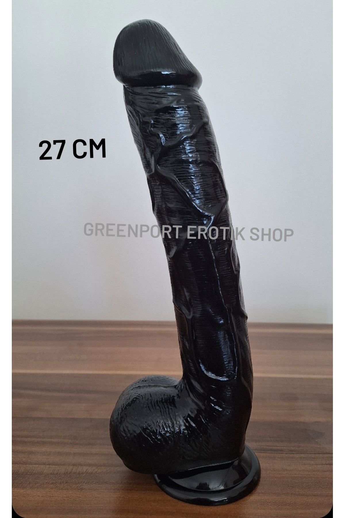 Greenport Gerçekçi Dildo Penis 27 Cm Uzunluk Siyah 537 gram Penis Vajina Anal Uyumlu