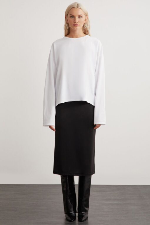 GRIMELANGE Basıl Kadın %100 Pamuk Bisiklet Yaka Oversize Fit Uzun Kollu Beyaz T-shirt en ucuz fiyata kozmetikara.com sitemizden sipariş verebilirsiniz.