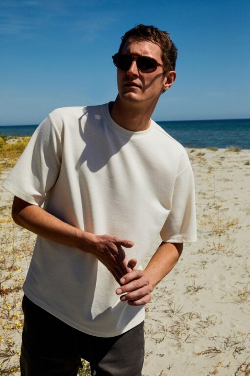 GRIMELANGE CHIC Erkek Relaxed Fit Dokulu Pamuk Kumaş Ekru T-Shirt en ucuz fiyata kozmetikara.com sitemizden sipariş verebilirsiniz.