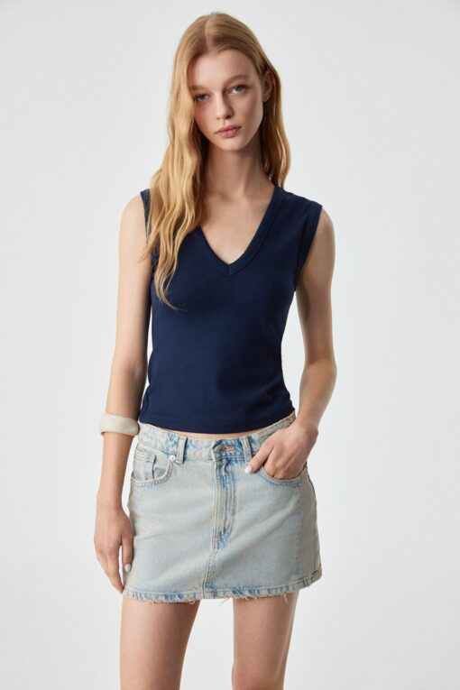 GRIMELANGE Lescosa Kadın Slim V Yaka Kolsuz Lacivert Bluz ürünü ucuz fiyat, hızlı kargo ve kredi kartına 12 ay taksit imkanı ile hemen sitemizden sipariş verin.