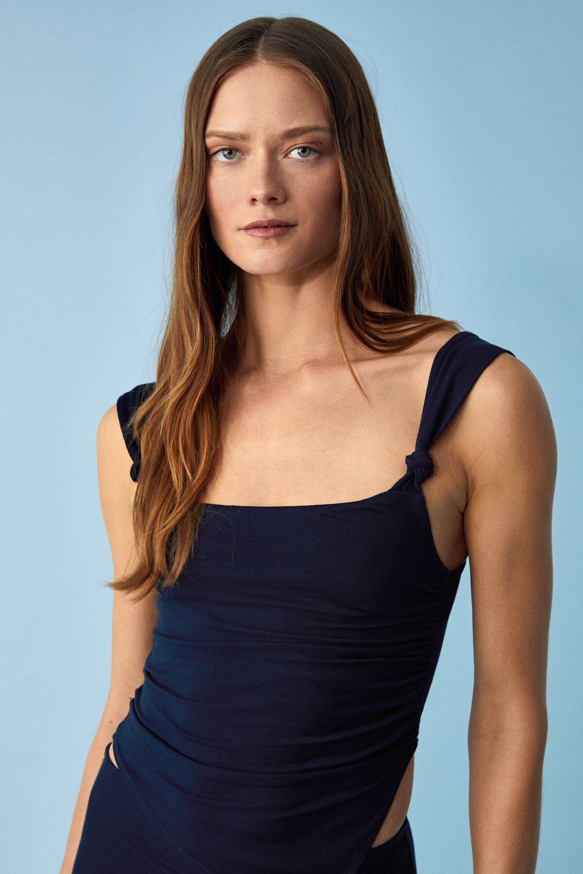 GRIMELANGE XANTER Kadın Balerin Yaka Regular Kısa Lacivert Bluz en ucuz fiyata kozmetikara.com sitemizden sipariş verebilirsiniz.