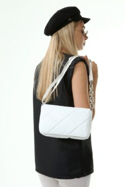 Güce Beyaz Büyük Kapitoneli Plastik Zincirli Askılı El Ve Omuz Çantası Gc015801