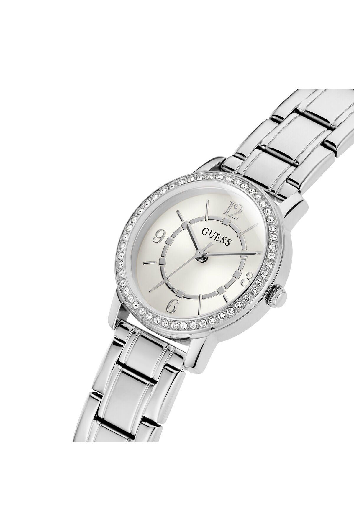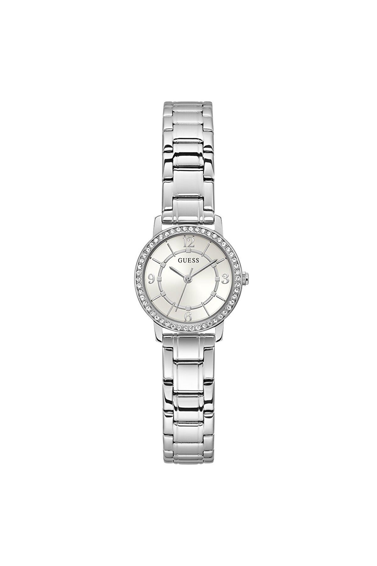 CaseDiameter:28 mm WaterProof:3 ATM CaseThickness:8 mm DialType:Analog DialColor:Beyaz KasaMateryali:Çelik StrapLanyardProperty:Çelik BrandName:Guess Yaş Grubu:Kadın Gender:Kadın CategoryName:Kadın Klasik Saat Style:Klasik Saatler CaseColor:Metalik Gri StrapLanyardColor:Metalik Gri GlassProperty:Mineral Technology:Quartz KadranTasi:Var Calendar:Yok Kronometre:Yok CaseStone:Yok Alarm:Yok DialStone:Yok CaseShape:Yuvarlak