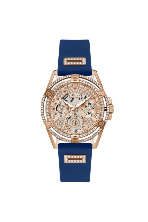 CaseThickness:12 mm WaterProof:3 ATM CaseDiameter:40 mm DialType:Analog KasaMateryali:Çelik BrandName:Guess Yaş Grubu:Kadın Gender:Kadın CategoryName:Kadın Klasik Saat Style:Klasik Saatler StrapLanyardColor:Mavi GlassProperty:Mineral Technology:Quartz CaseColor:Rose Gold DialColor:Rose Gold StrapLanyardProperty:Silikon Calendar:Var CaseStone:Var DialStone:Var KadranTasi:Var Kronometre:Yok Alarm:Yok CaseShape:Yuvarlak