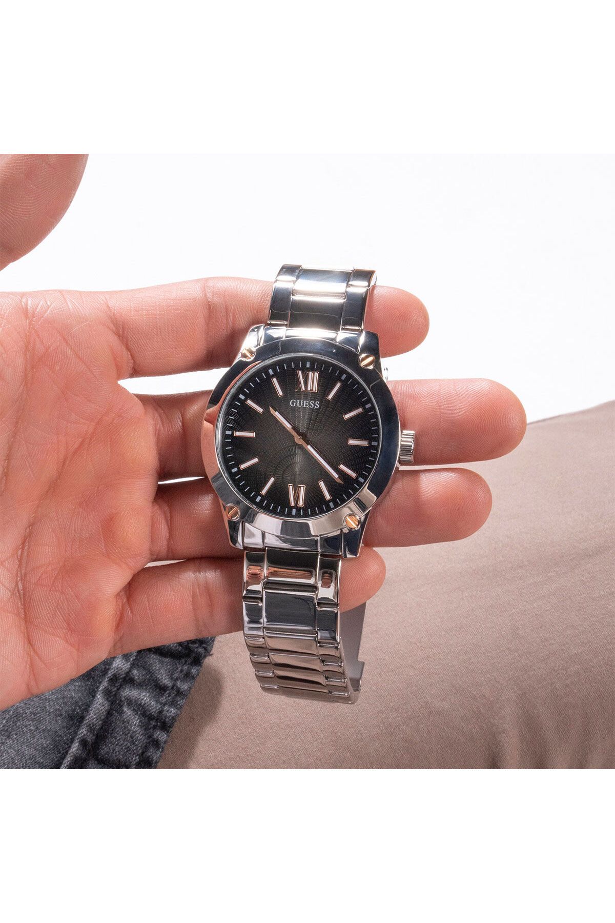 CaseDiameter:44 mm WaterProof:5 ATM CaseThickness:9 mm DialType:Analog StrapLanyardProperty:Çelik KasaMateryali:Çelik Yaş Grubu:Erkek Gender:Erkek CategoryName:Erkek Klasik Saat DialColor:Füme BrandName:Guess Style:Klasik Saatler CaseColor:Metalik Gri StrapLanyardColor:Metalik Gri GlassProperty:Mineral Technology:Quartz Calendar:Yok Kronometre:Yok CaseStone:Yok Alarm:Yok DialStone:Yok KadranTasi:Yok CaseShape:Yuvarlak
