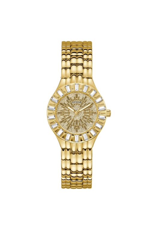 WaterProof:3 ATM CaseDiameter:34 mm CaseThickness:8 mm CaseColor:Altın Rengi StrapLanyardColor:Altın Rengi DialColor:Altın Tonu DialType:Analog KasaMateryali:Çelik StrapLanyardProperty:Çelik BrandName:Guess Yaş Grubu:Kadın Gender:Kadın CategoryName:Kadın Klasik Saat Style:Klasik Saatler GlassProperty:Mineral Technology:Quartz CaseStone:Var DialStone:Var KadranTasi:Yok Calendar:Yok Kronometre:Yok Alarm:Yok CaseShape:Yuvarlak