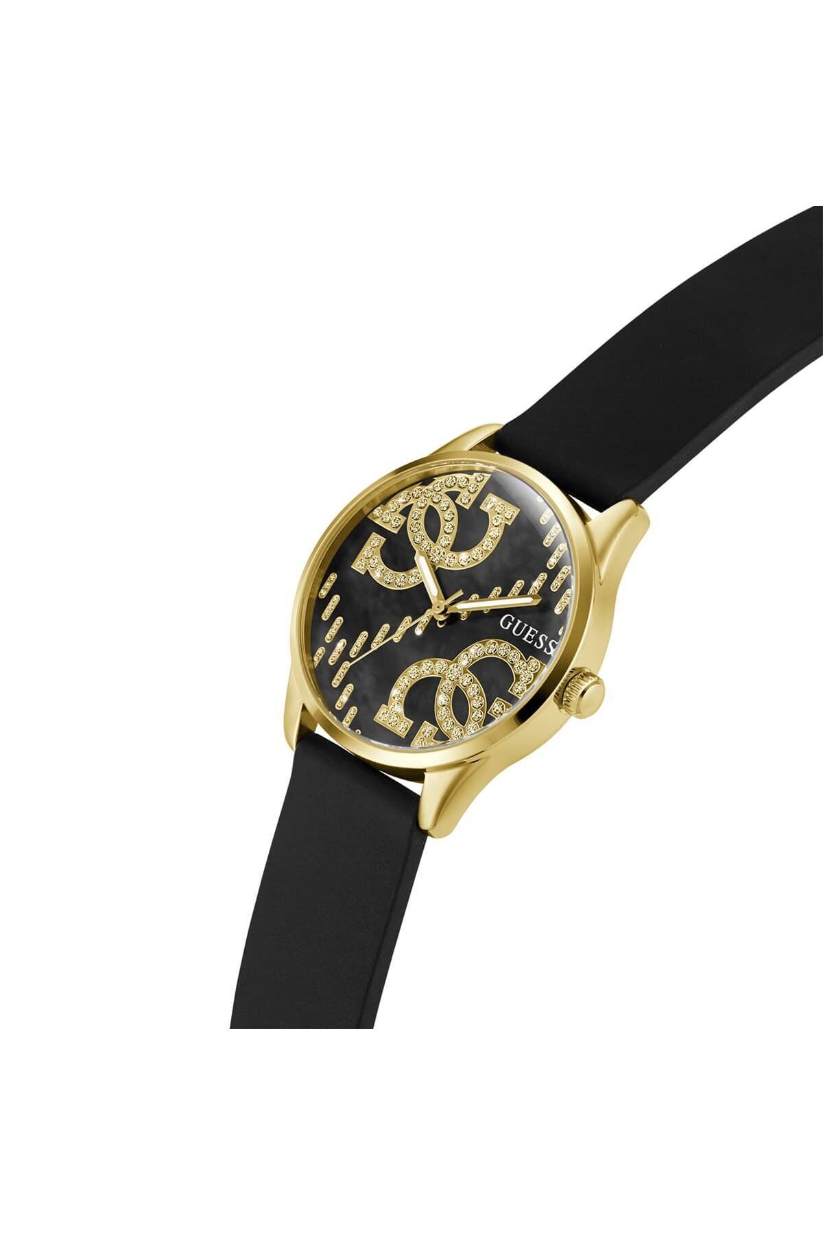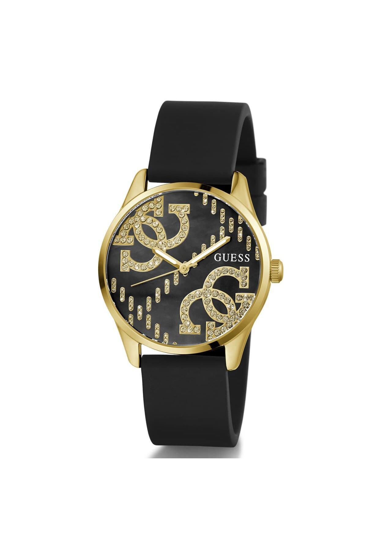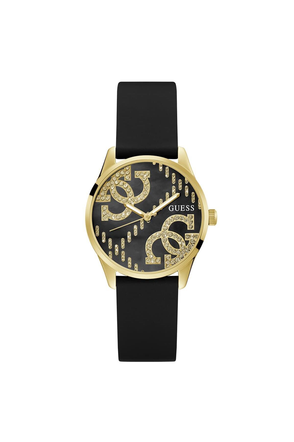 WaterProof:3 ATM CaseDiameter:36 mm CaseThickness:9 mm CaseColor:Altın Rengi DialType:Analog KasaMateryali:Çelik BrandName:Guess Gender:Kadın Yaş Grubu:Kadın CategoryName:Kadın Klasik Saat Style:Klasik Saatler GlassProperty:Mineral Technology:Quartz StrapLanyardProperty:Silikon DialColor:Siyah StrapLanyardColor:Siyah KadranTasi:Var Calendar:Yok Kronometre:Yok CaseStone:Yok Alarm:Yok DialStone:Yok CaseShape:Yuvarlak