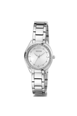 WaterProof:3 ATM CaseDiameter:30 mm CaseThickness:8 mm DialType:Analog DialColor:Beyaz KasaMateryali:Çelik StrapLanyardProperty:Çelik BrandName:Guess Yaş Grubu:Kadın Gender:Kadın CategoryName:Kadın Klasik Saat Style:Klasik Saatler CaseColor:Metalik Gri StrapLanyardColor:Metalik Gri GlassProperty:Mineral Technology:Quartz KadranTasi:Var CaseStone:Var DialStone:Var Alarm:Yok Calendar:Yok Kronometre:Yok CaseShape:Yuvarlak
