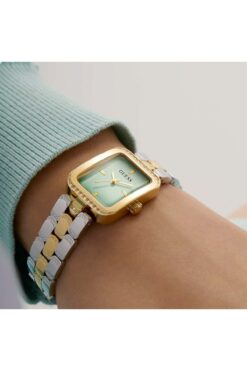 CaseDiameter:22 x 28 mm WaterProof:3 ATM CaseThickness:8 mm CaseColor:Altın Rengi DialType:Analog KasaMateryali:Çelik StrapLanyardProperty:Çelik CaseShape:Dikdörtgen Mensei:Filipinler BrandName:Guess Yaş Grubu:Kadın Gender:Kadın CategoryName:Kadın Klasik Saat Style:Klasik Saatler StrapLanyardColor:Metalik Gri GlassProperty:Mineral Technology:Quartz DialStone:Var CaseStone:Var DialColor:Yeşil Alarm:Yok Calendar:Yok Kronometre:Yok KadranTasi:Yok