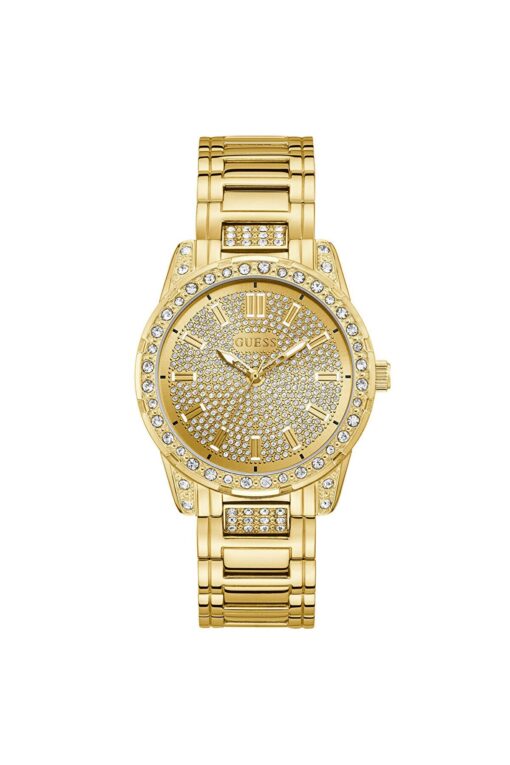 WaterProof:1 ATM CaseDiameter:40 mm CaseThickness:9 mm Style:Abiye Saatler CaseColor:Altın Rengi StrapLanyardColor:Altın Rengi DialColor:Altın Tonu DialType:Analog KasaMateryali:Çelik StrapLanyardProperty:Çelik BrandName:Guess Yaş Grubu:Kadın Gender:Kadın CategoryName:Kadın Abiye Saat GlassProperty:Mineral Technology:Quartz KadranTasi:Var CaseStone:Var DialStone:Var Kronometre:Yok Alarm:Yok Calendar:Yok CaseShape:Yuvarlak