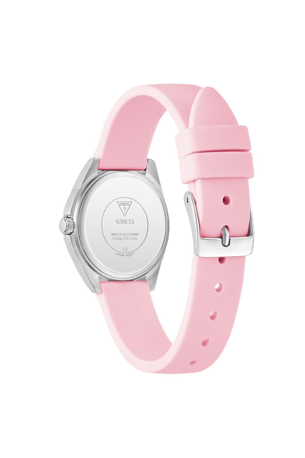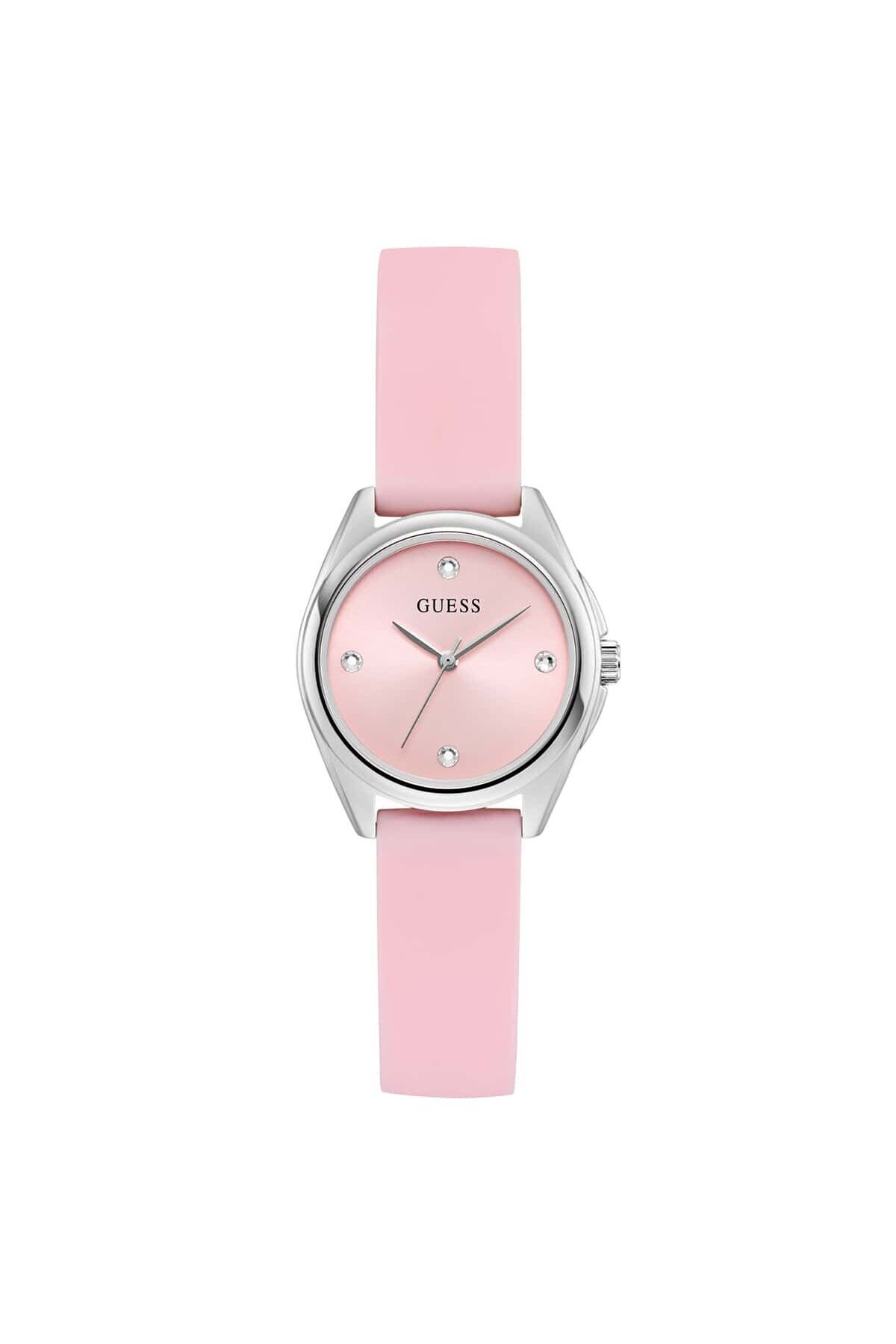 CaseDiameter:29 mm WaterProof:3 ATM CaseThickness:8 mm DialType:Analog KasaMateryali:Çelik Mensei:Filipinler BrandName:Guess Yaş Grubu:Kadın Gender:Kadın CategoryName:Kadın Klasik Saat Style:Klasik Saatler CaseColor:Metalik Gri GlassProperty:Mineral DialColor:Pembe StrapLanyardColor:Pembe Technology:Quartz StrapLanyardProperty:Silikon CaseStone:Var DialStone:Var Calendar:Yok Kronometre:Yok KadranTasi:Yok Alarm:Yok CaseShape:Yuvarlak