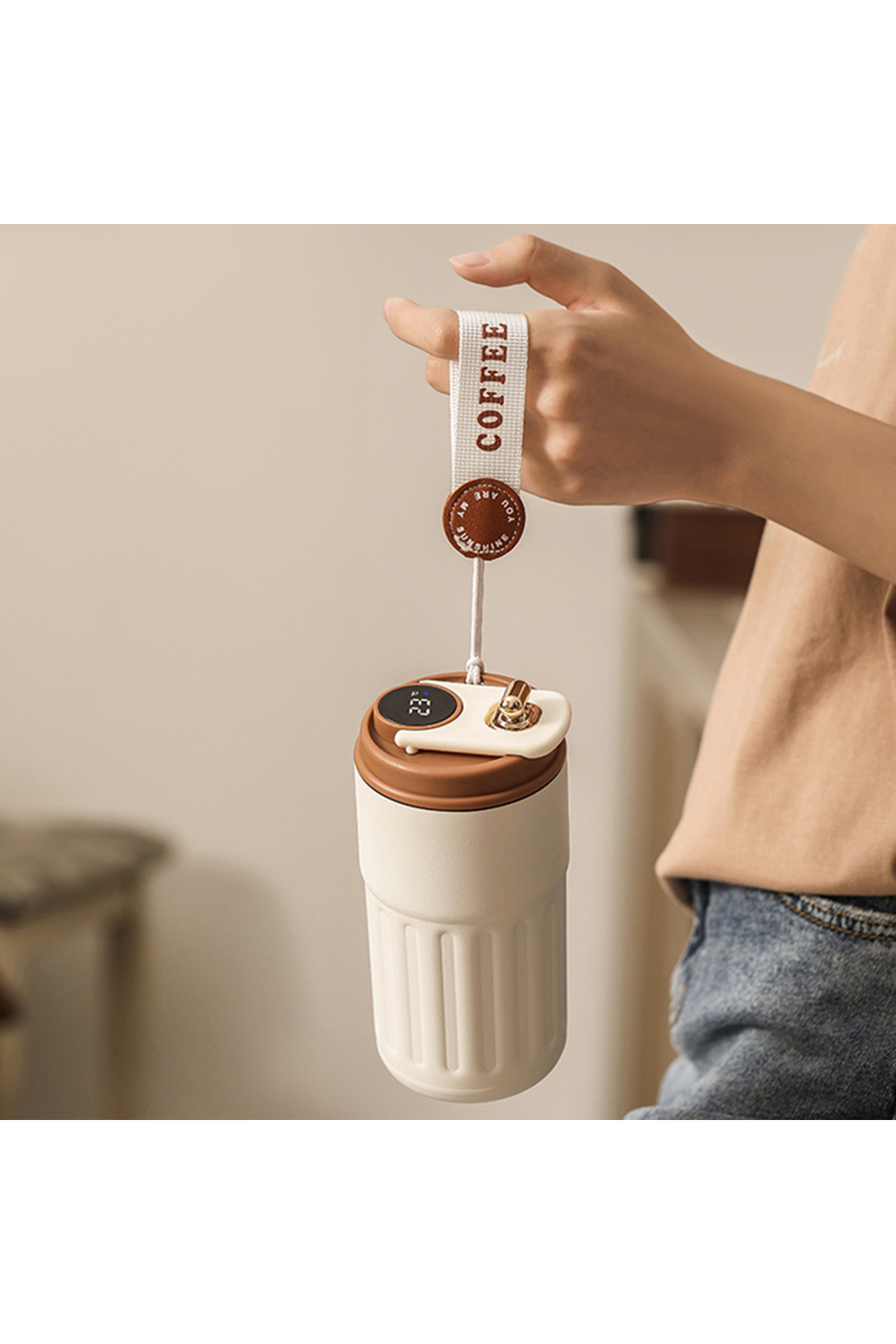 Gülay AVM 316 Paslanmaz Çelik Dereceli Termos Çift Katman El Yakmaz Tutma Askılıklı 400 ML Termos Gly-565