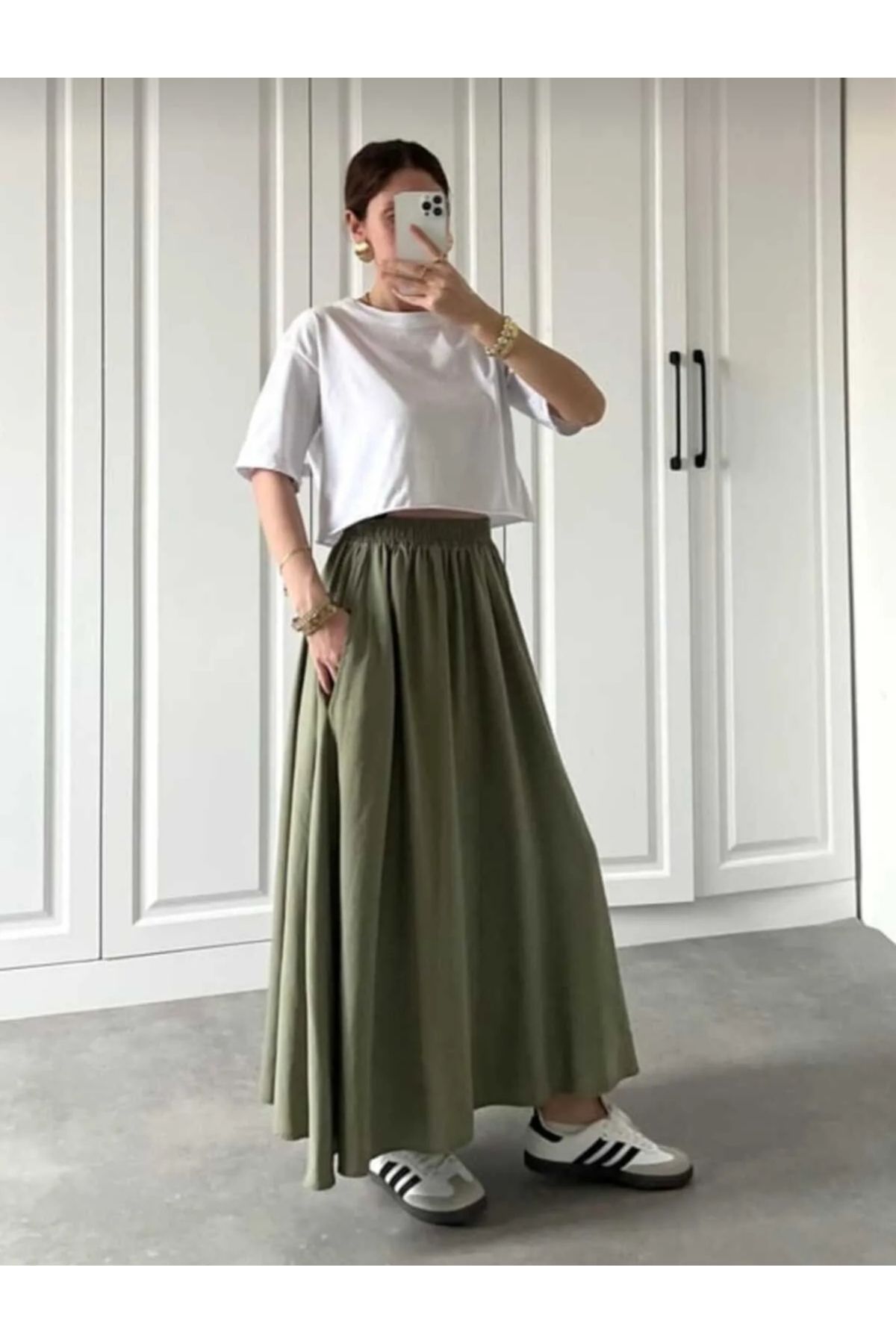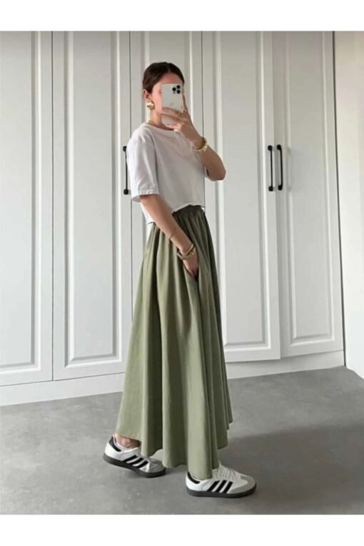 Gülmude Uzun Lastikli Günlük Etek Poplin Kumaş