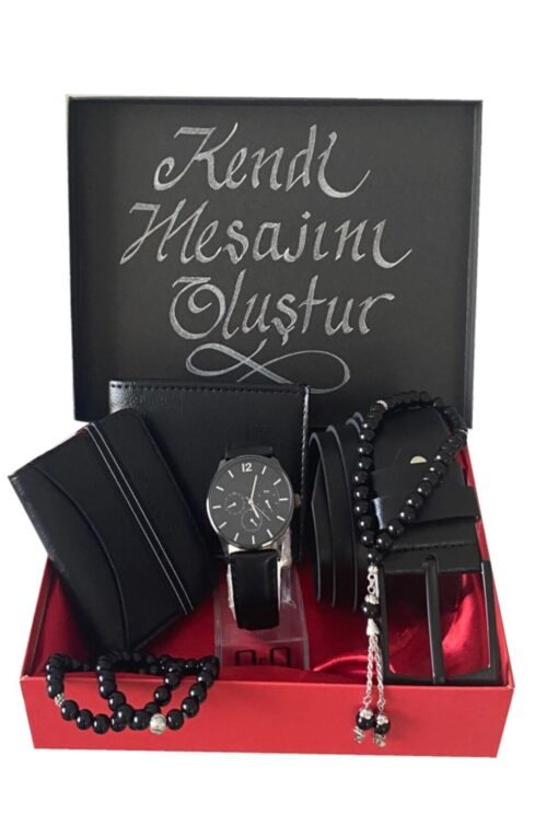 GulShop Öğretmenler Günü Kol Saati Seti Siyah Saat Tesbih Deri Cüzdan Kemer Kredi Kartlık 2 Bileklik