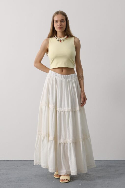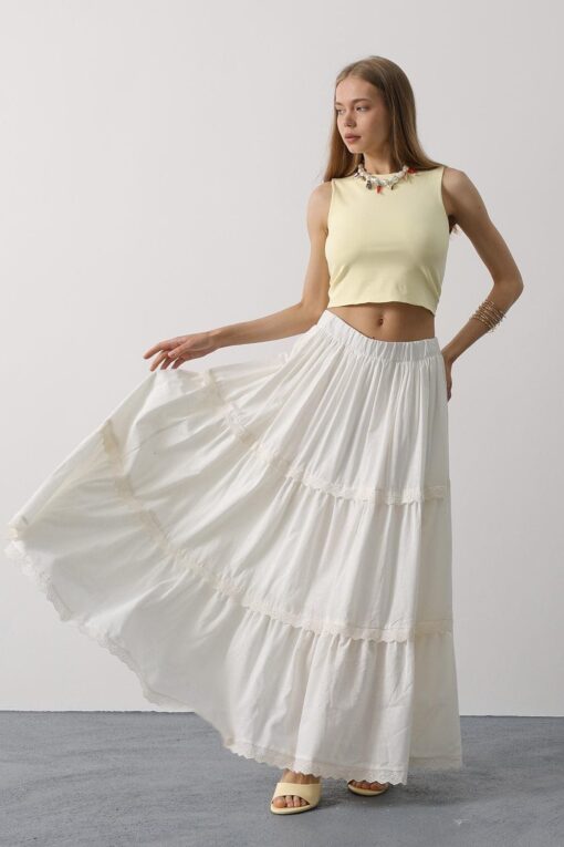 GUOZ Dantel Detaylı Beyaz Uzun Etek Fiyatları, Özellikleri ve Yorumları